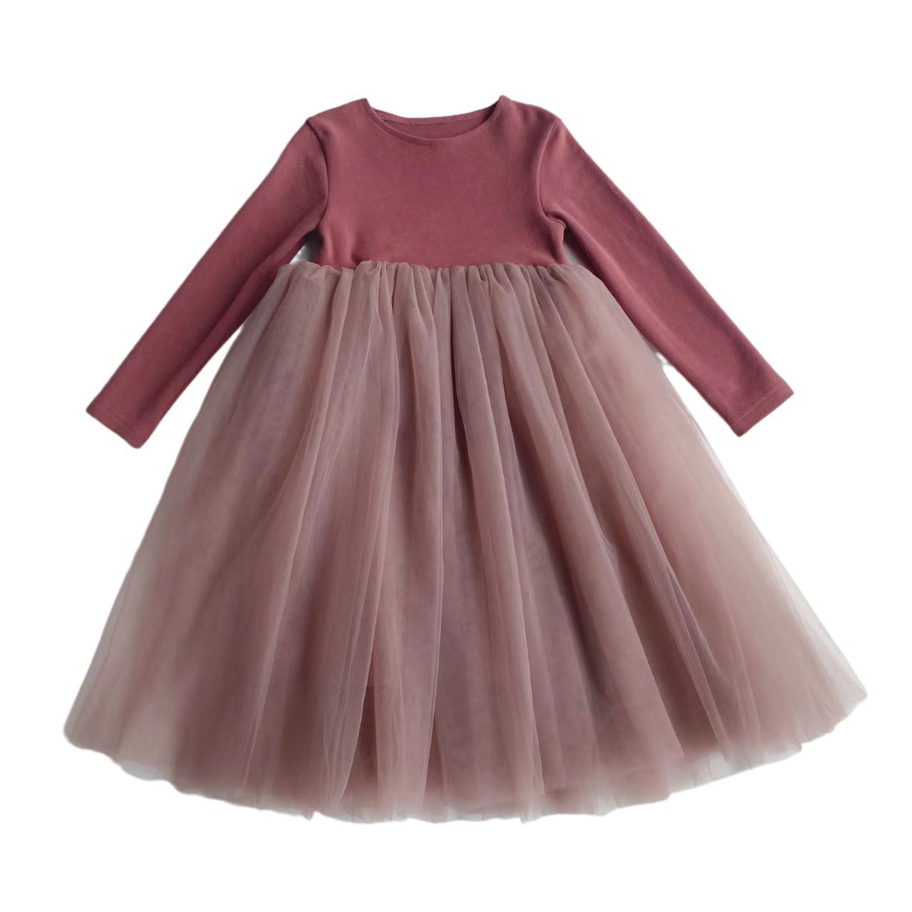 한국어 버전 새로운 2025 봄, 가을 소녀 드레스 어린이 스커트 어린 소녀 스커트 긴팔 퍼프 거즈 스커트 대외 무역