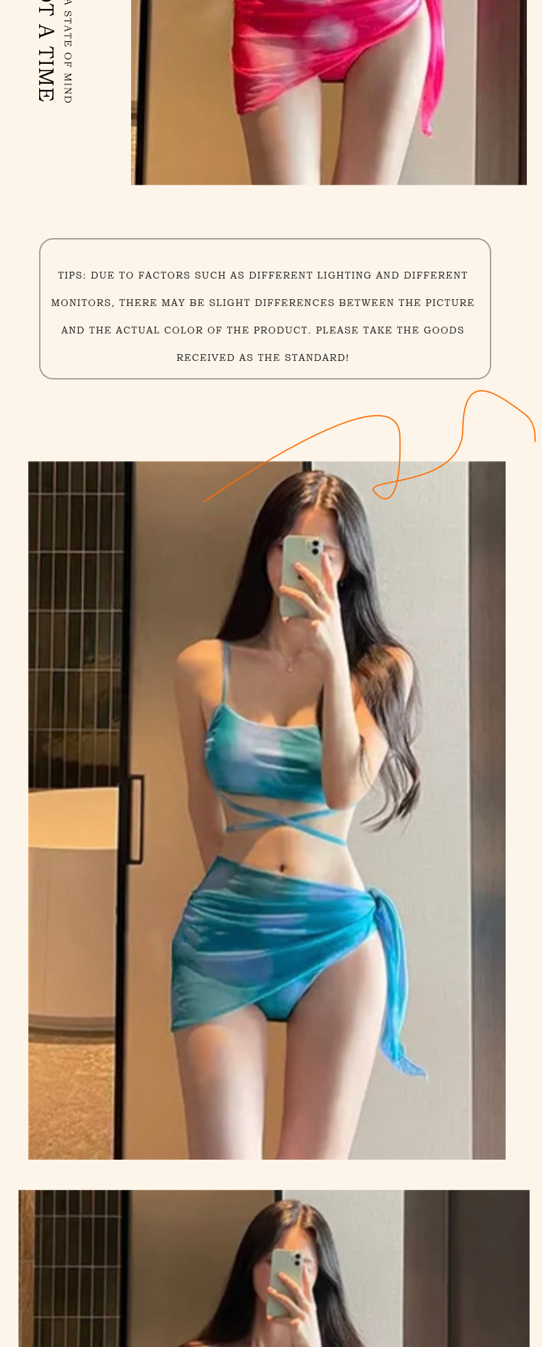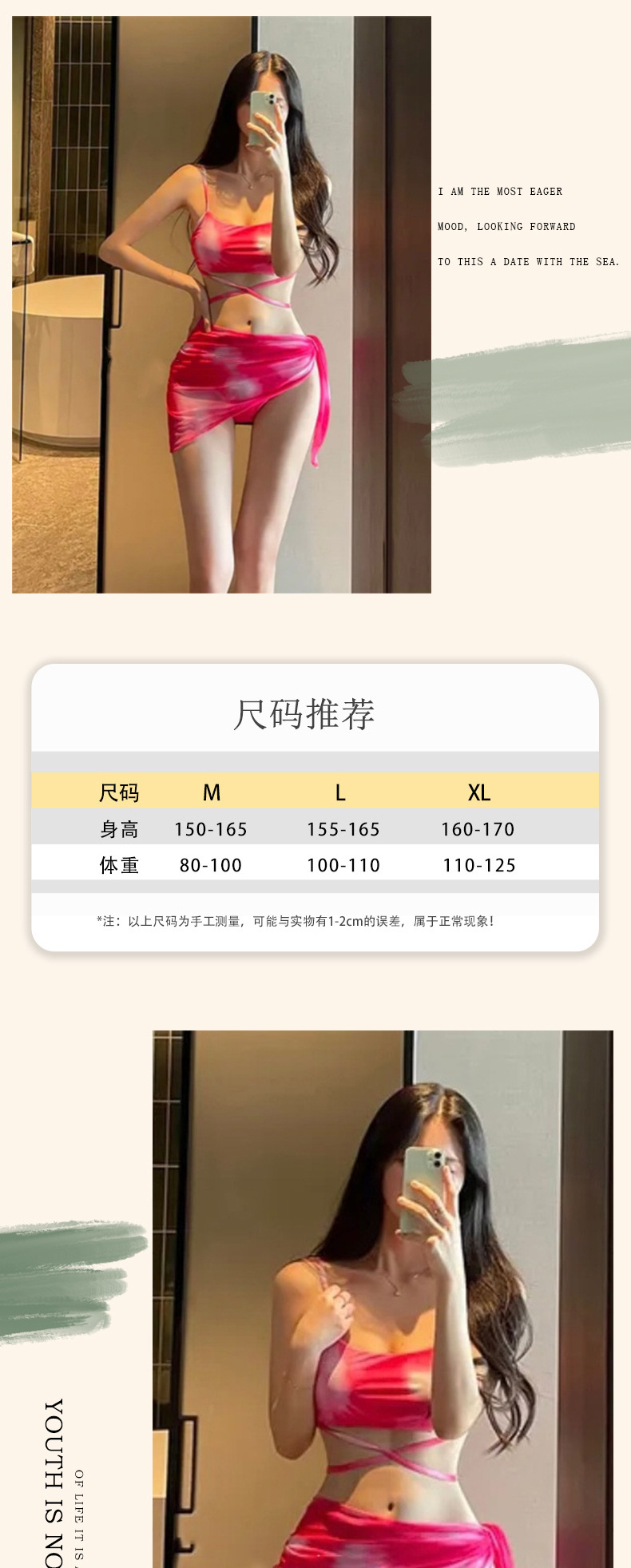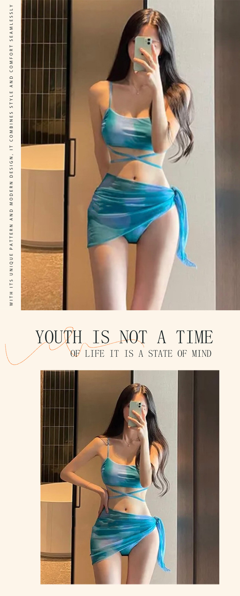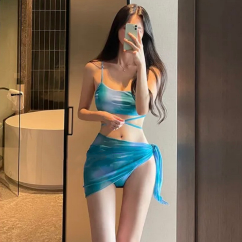 망사 수영복 한국 스타일 분리형 순수한 매력 비키니 3피스 세트 섹시한 작은 가슴 모아주는 비치 리조트 온천 수영복