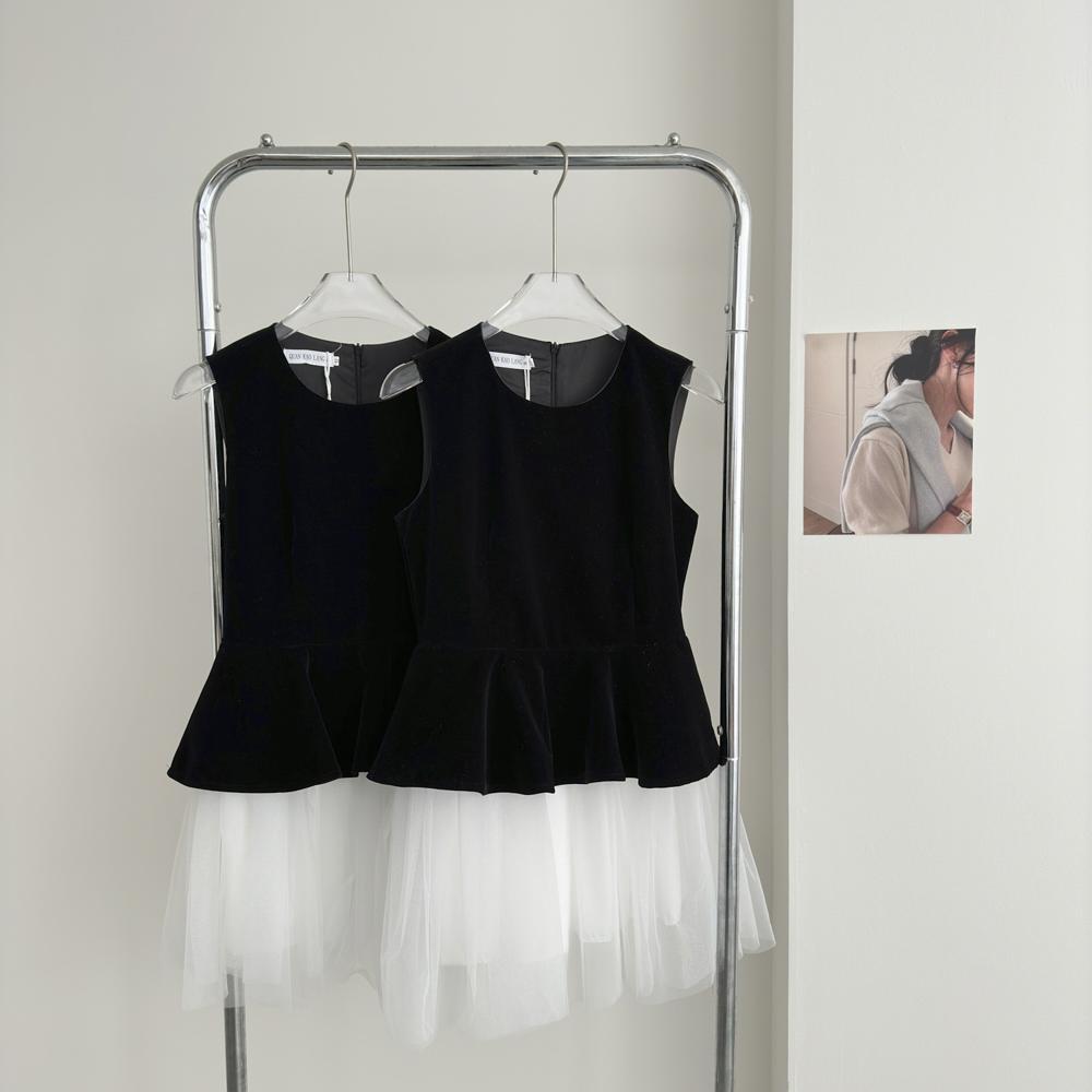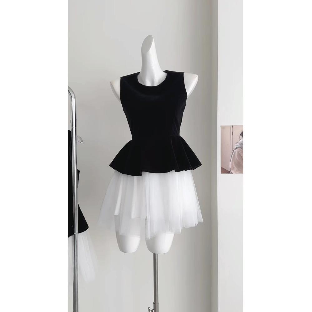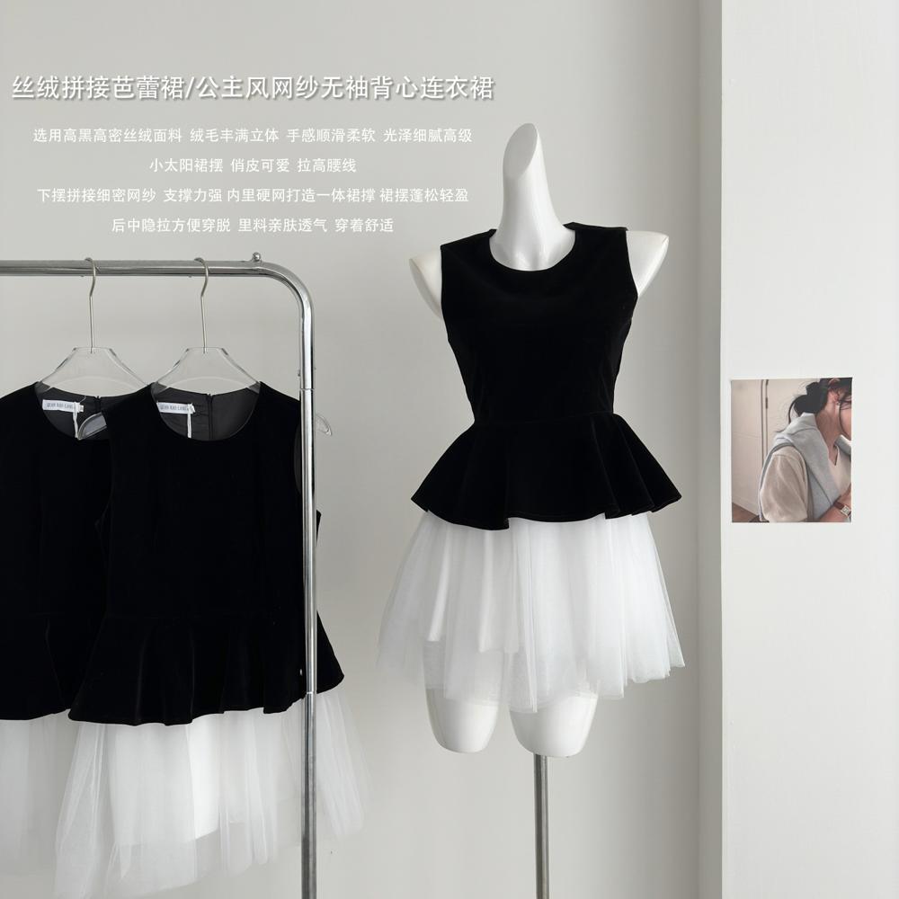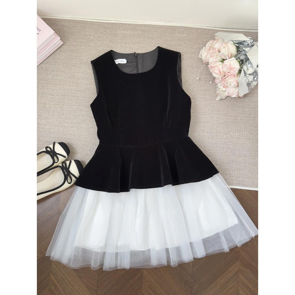 솔리드 컬러 지퍼 유행 바느질 발레 공주 스타일 메쉬 민소매 조끼 원피스 푹신한 원피스 여성의 겨울 새로운 도착스토어 가기