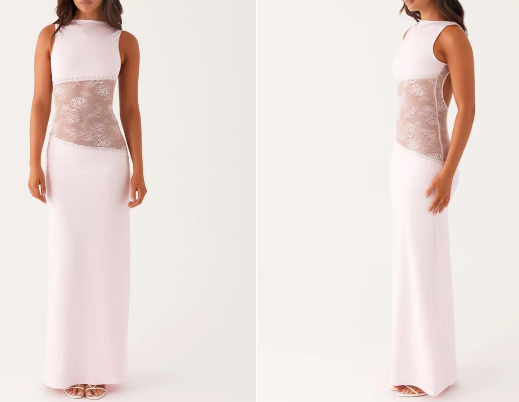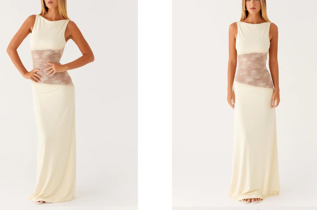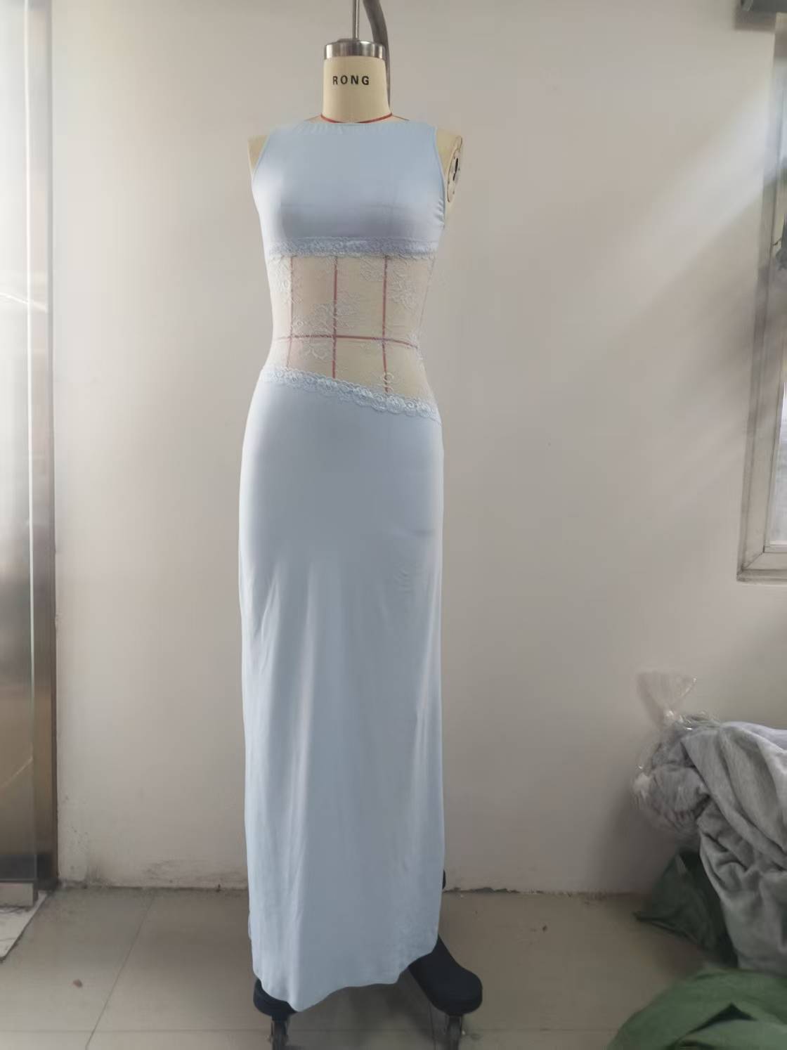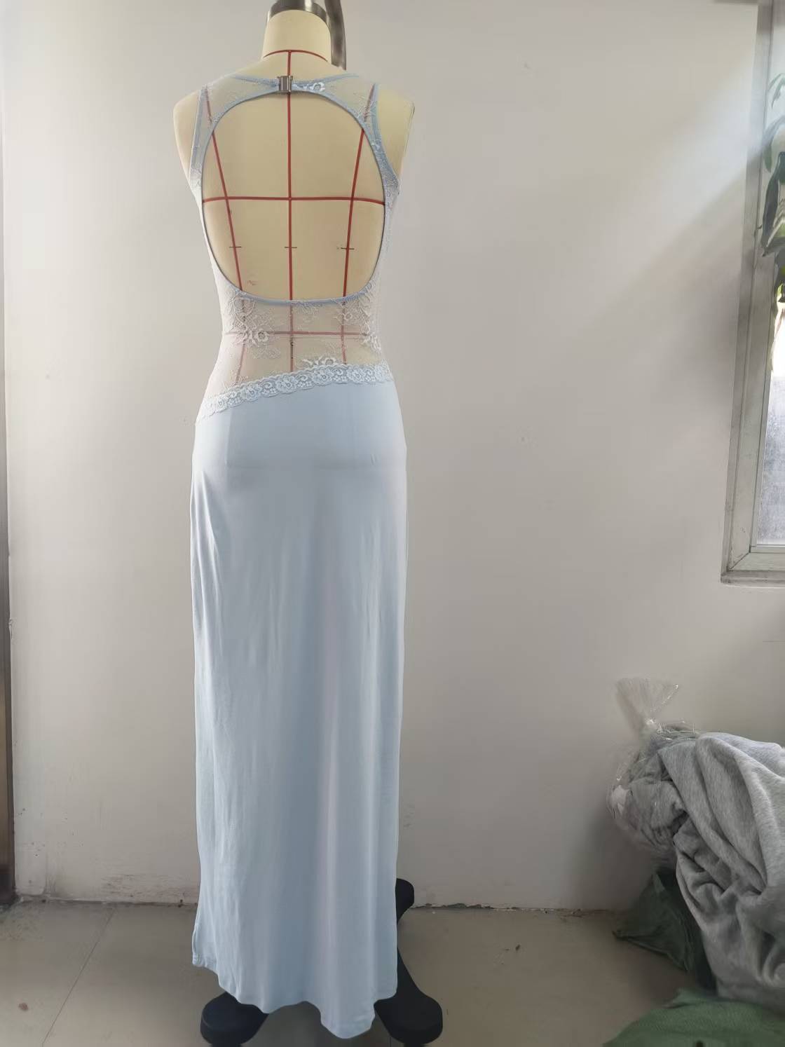 2025 새로운 유럽과 미국의 국경 간 여름 섹시한 슬림 핏 레이스 새틴 바느질 백리스 긴 원피스 슬리밍 원피스 여성스토어 가기