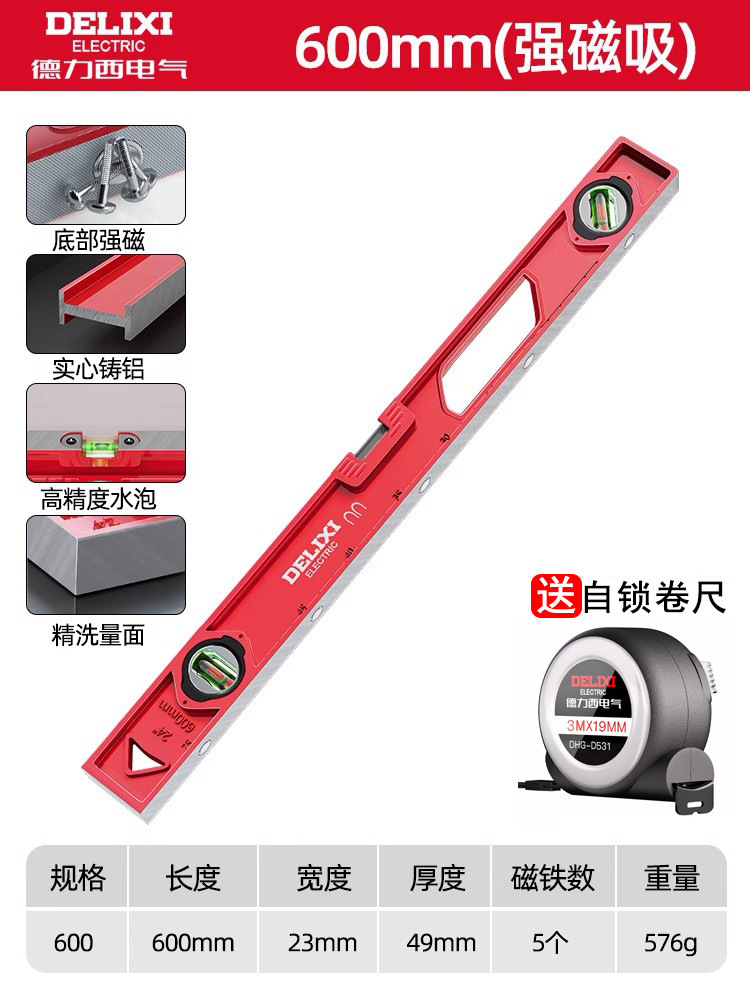 Delixi Electric 고정밀 레벨 미터, 강력한 자기 다기능 견고한 낙하 방지 알루미늄 합금 레벨 미터