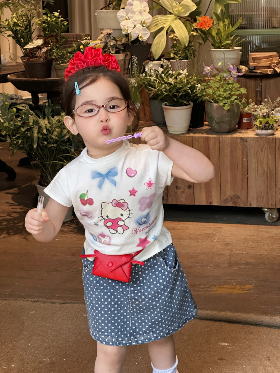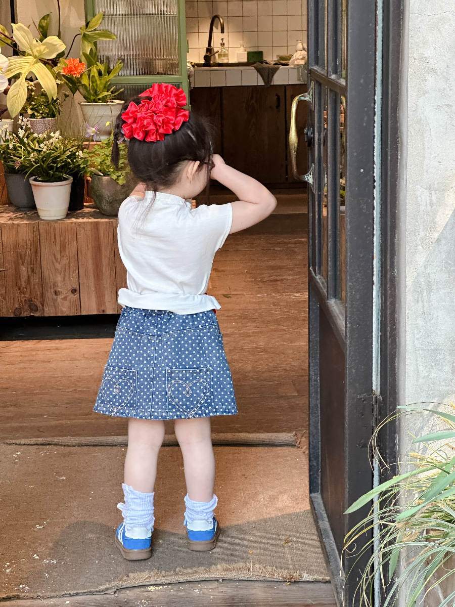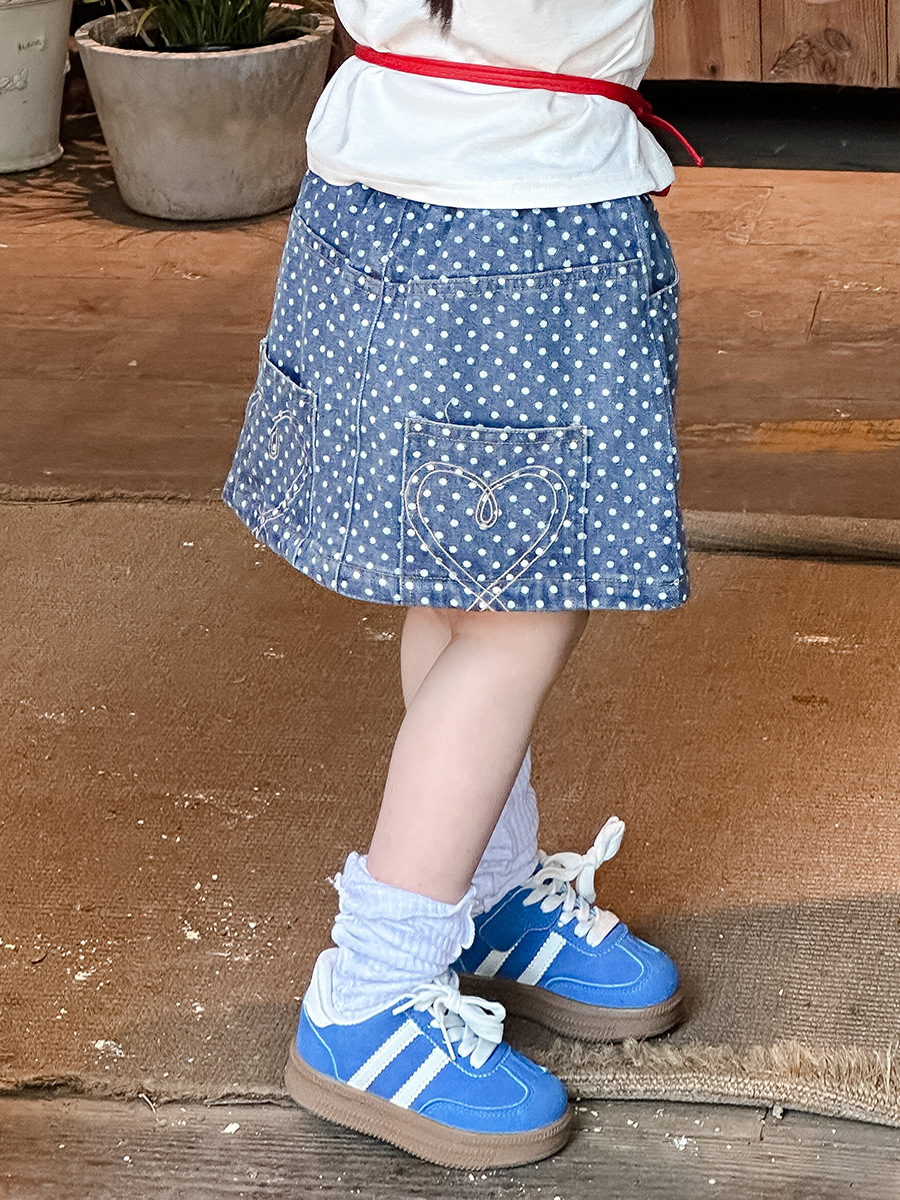 소녀 여름 원피스 폴로 도트 데님 스커트 2025 어린이 착용 한국 데님 스커트 어린이 및 아기