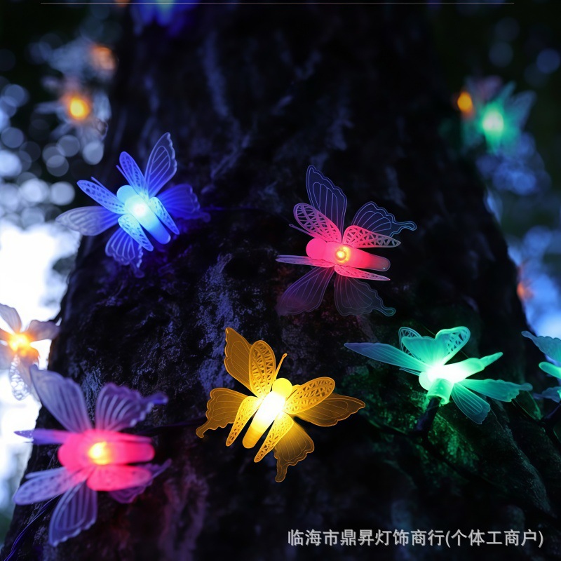 태양 야외 입체 나비 문자열 조명 led 조명 방 안뜰 장식 분위기 조명 방수 문자열 조명