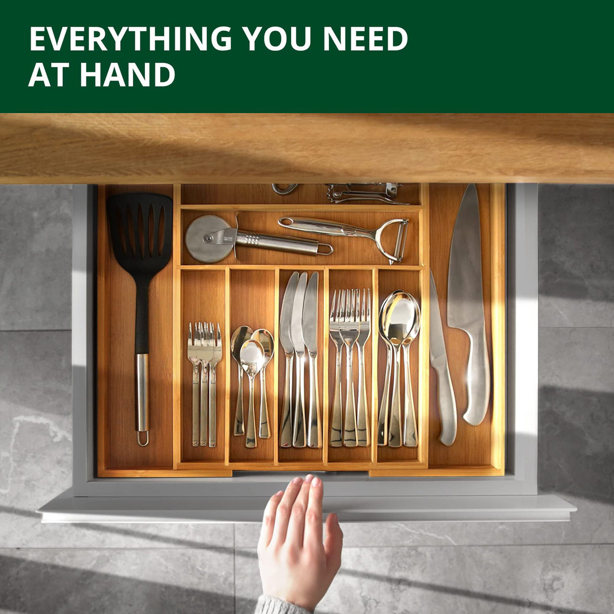 재고 있음 국경 간 접이식 식기 보관 상자 서랍 분할 대나무 정리 상자 주방 대나무 칼과 포크 보관 상자스토어 가기
