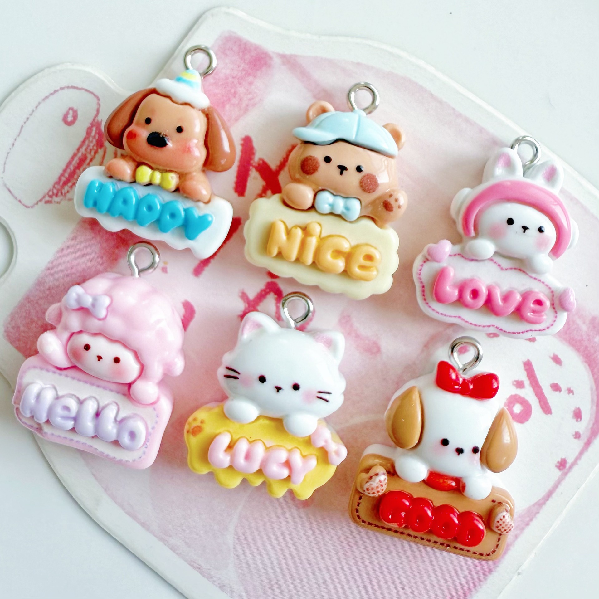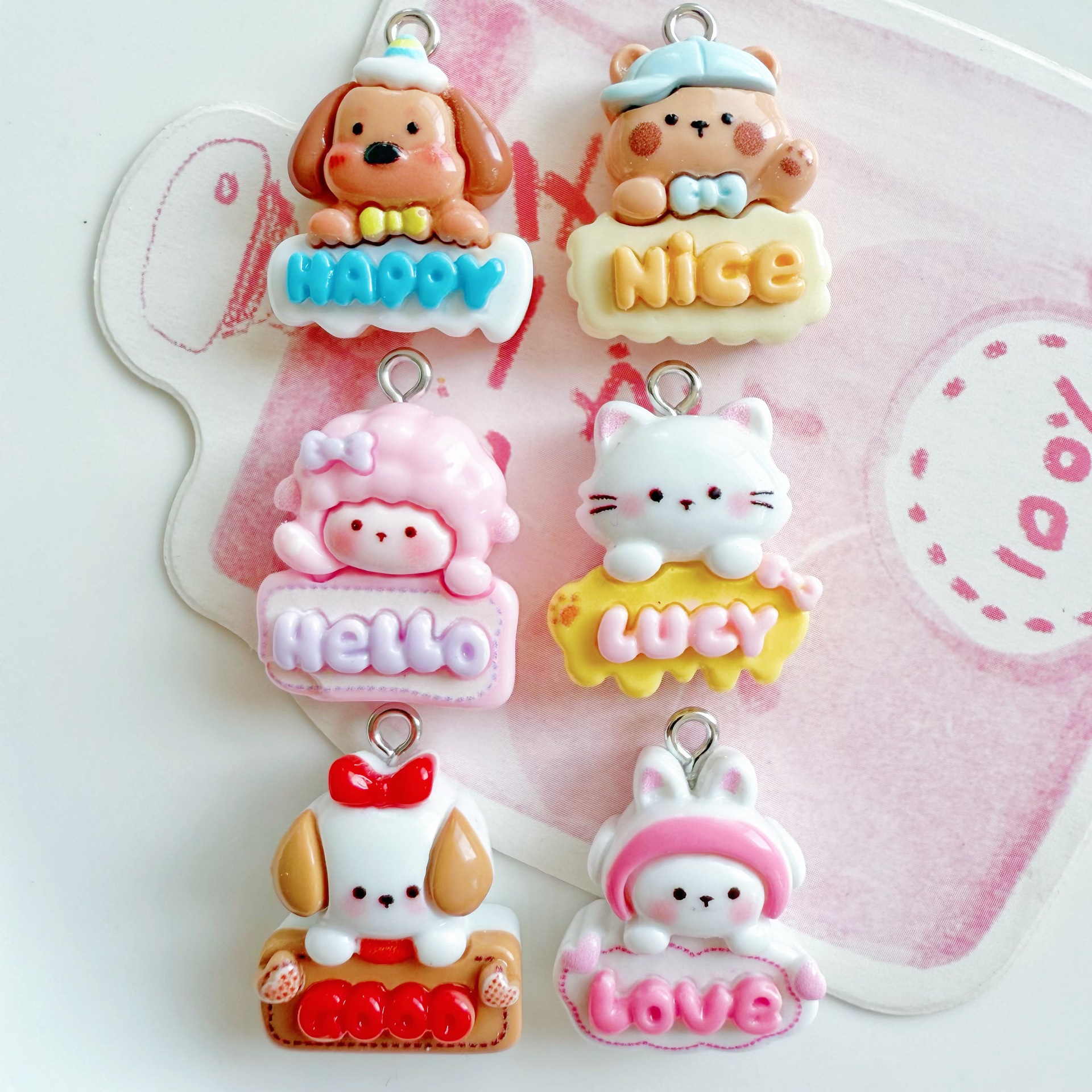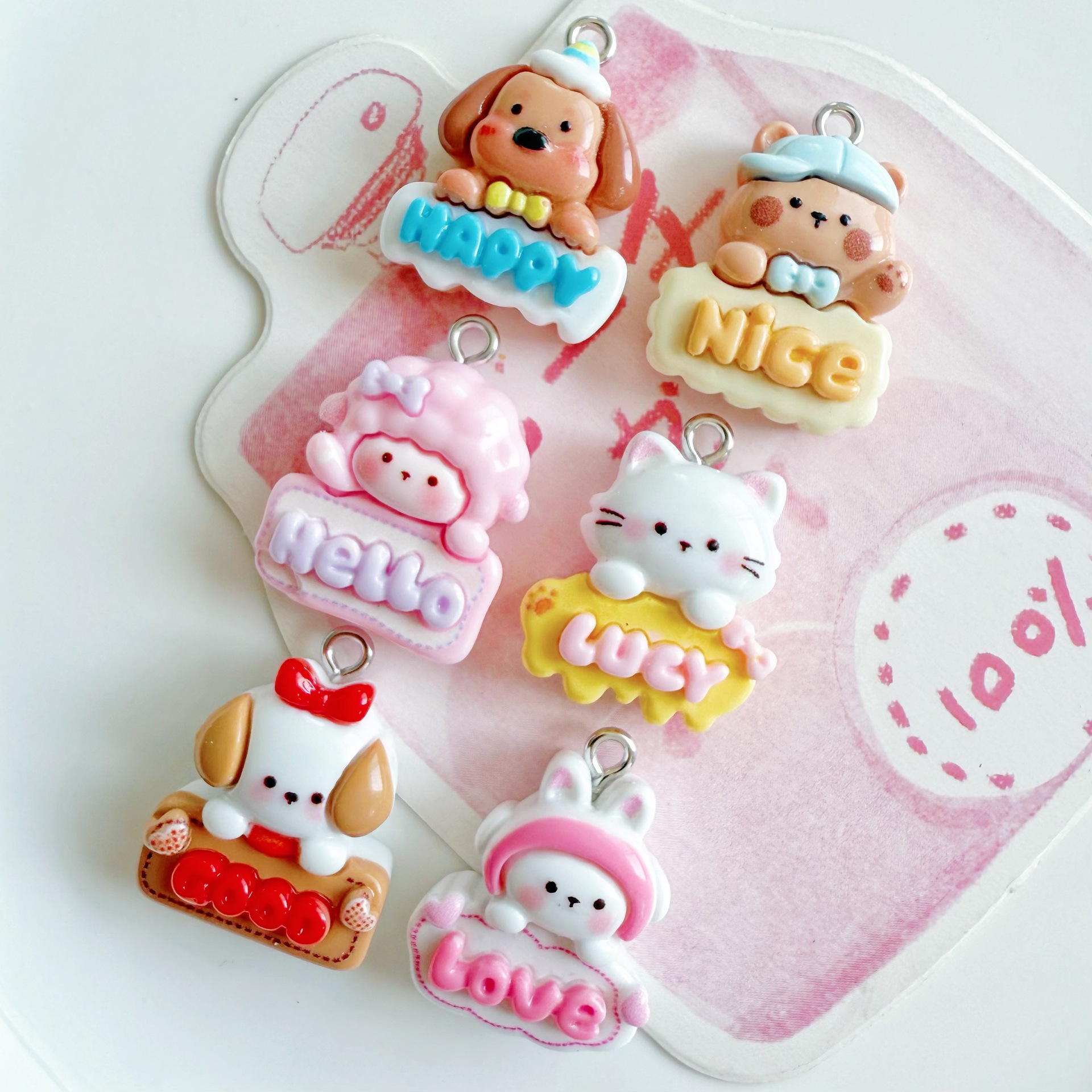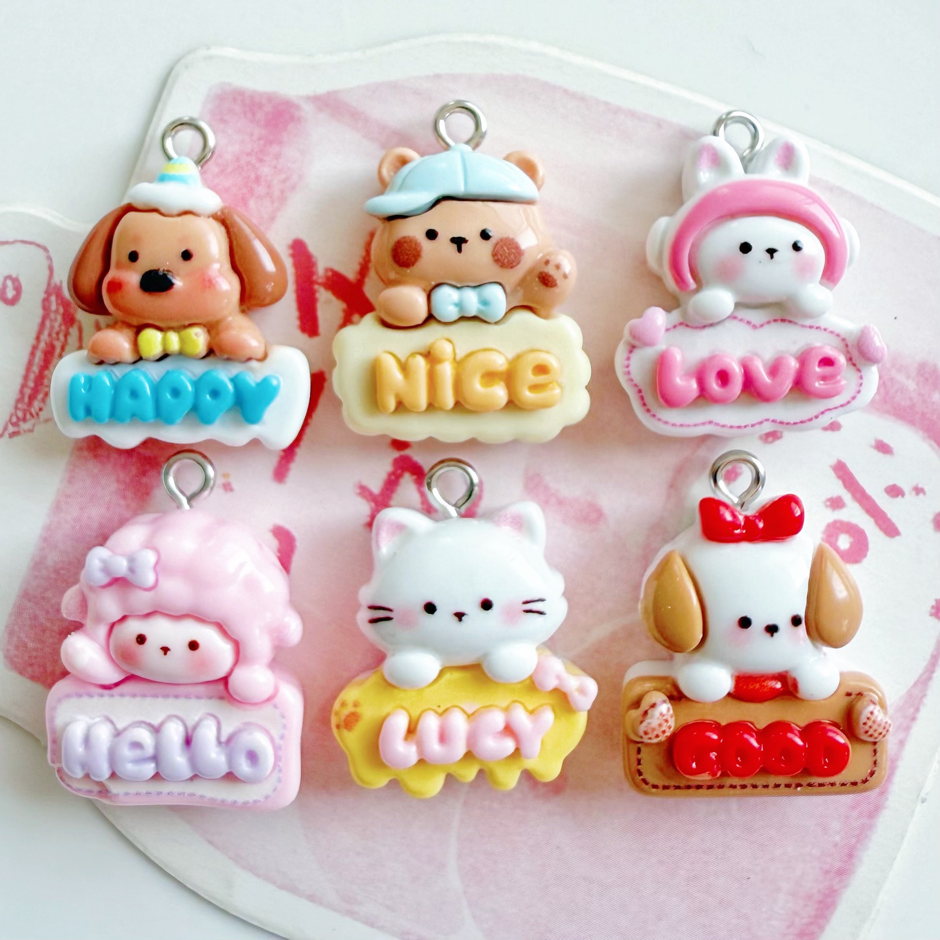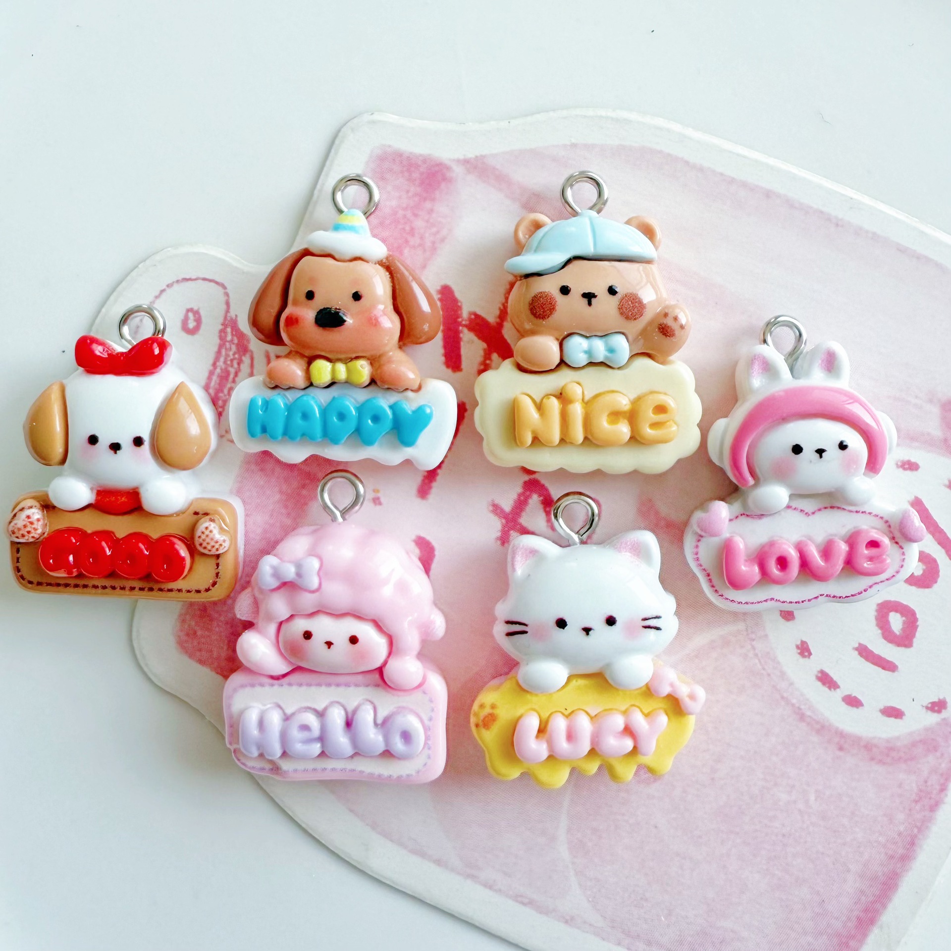 귀여운 만화 영어 동물 접시 DIY 보석 수지 액세서리 펜던트 펜던트 키 체인 보석 배치스토어 가기