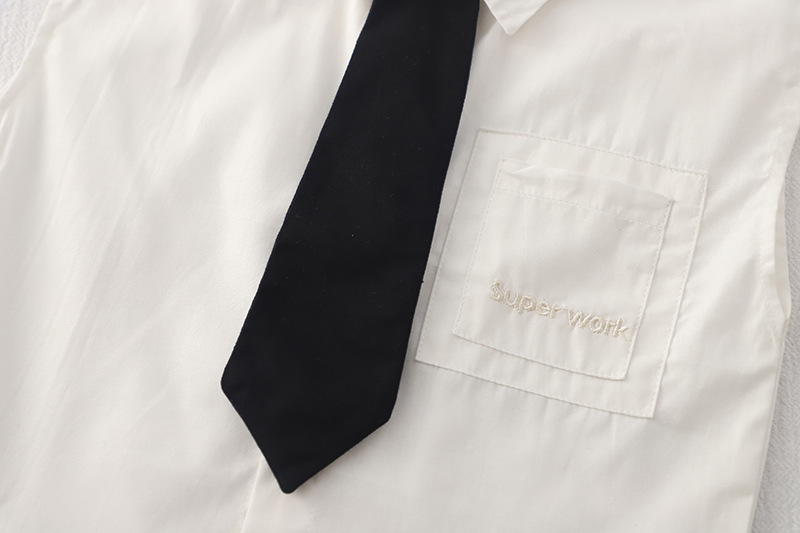 어린이 셔츠 얇은 소년의 셔츠 여름 2025 새로운 넥타이 셔츠 조끼 더피 잘 생긴 소년의 세트 트렌디스토어 가기