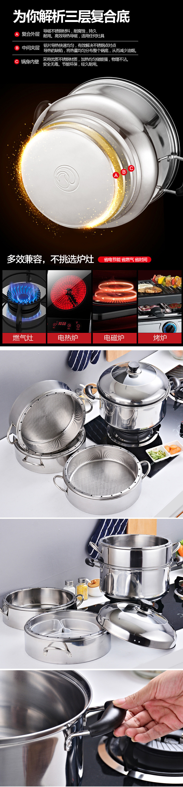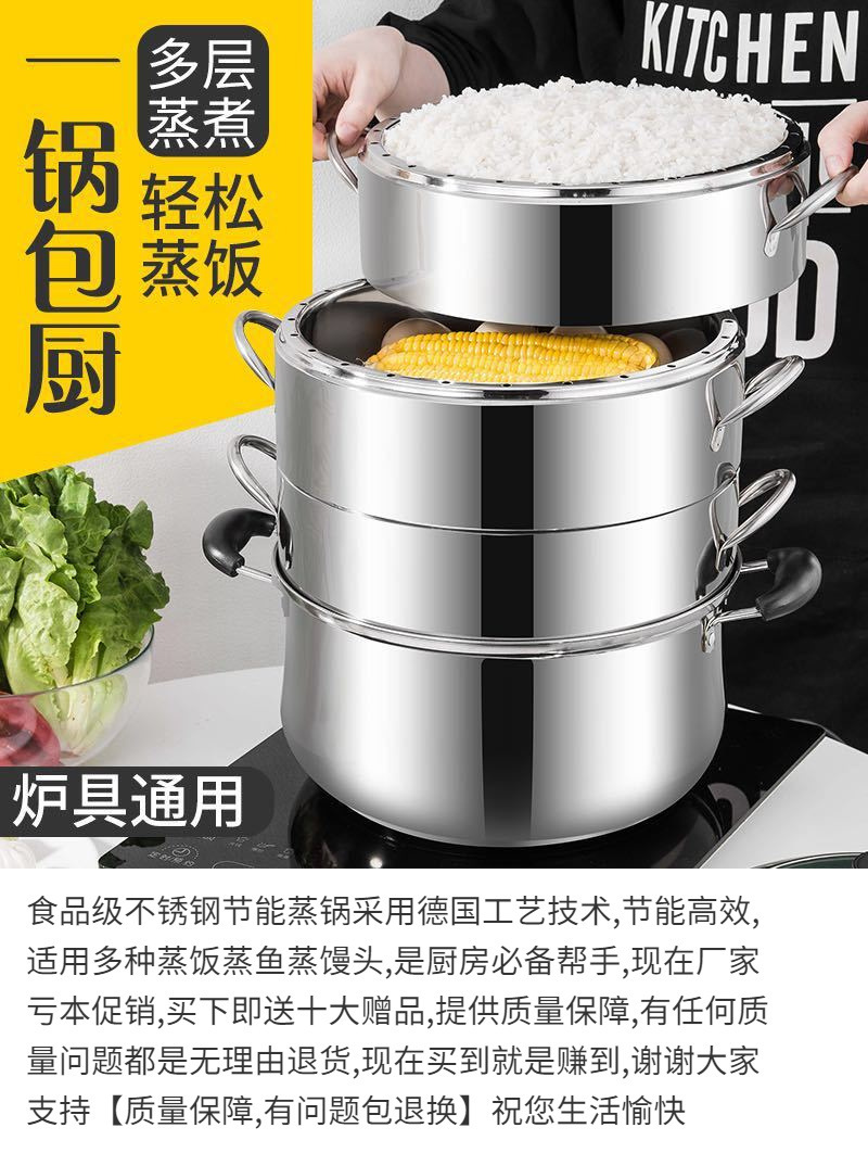 두꺼운 솔리드 오리지널 찜기, 스테인리스 3, 4, 5층 비구멍 찜밥솥, 무취 이중 바닥 에너지 절약 찜기스토어 가기