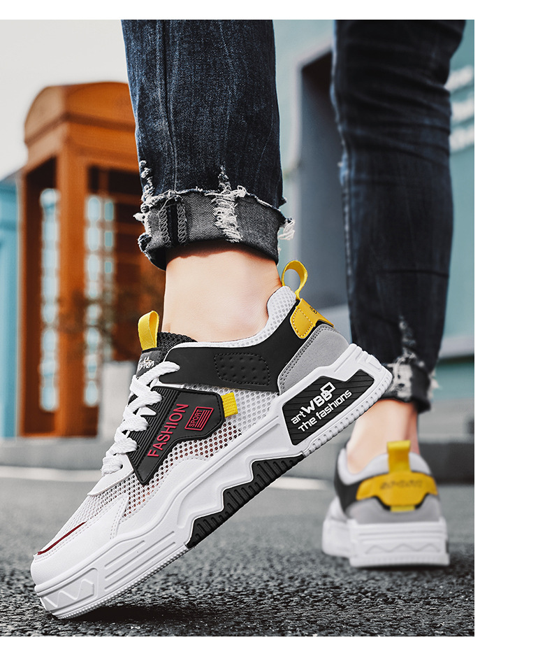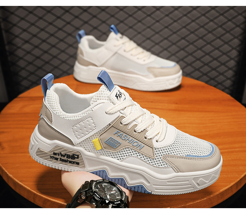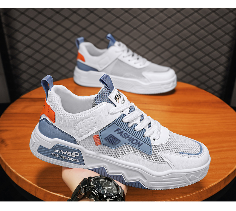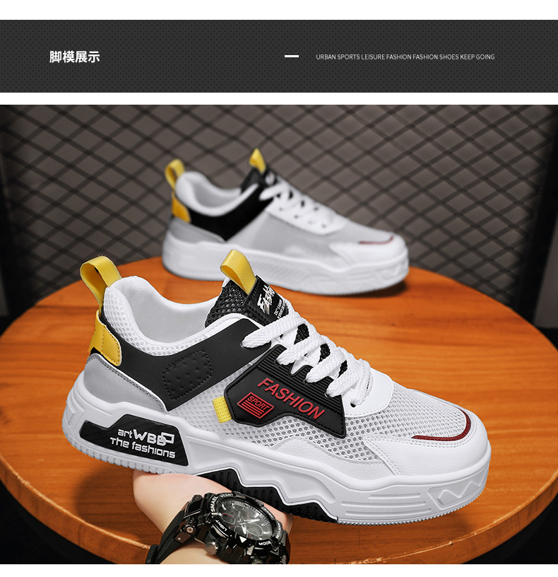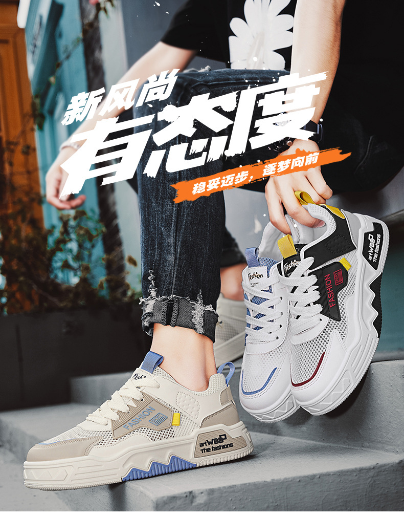 남성 신발 여름 새로운 통기성 메쉬 얇은 남성 유행 다목적 스포츠 패션 두꺼운 밑창 플랫 힐 캐주얼 운동화