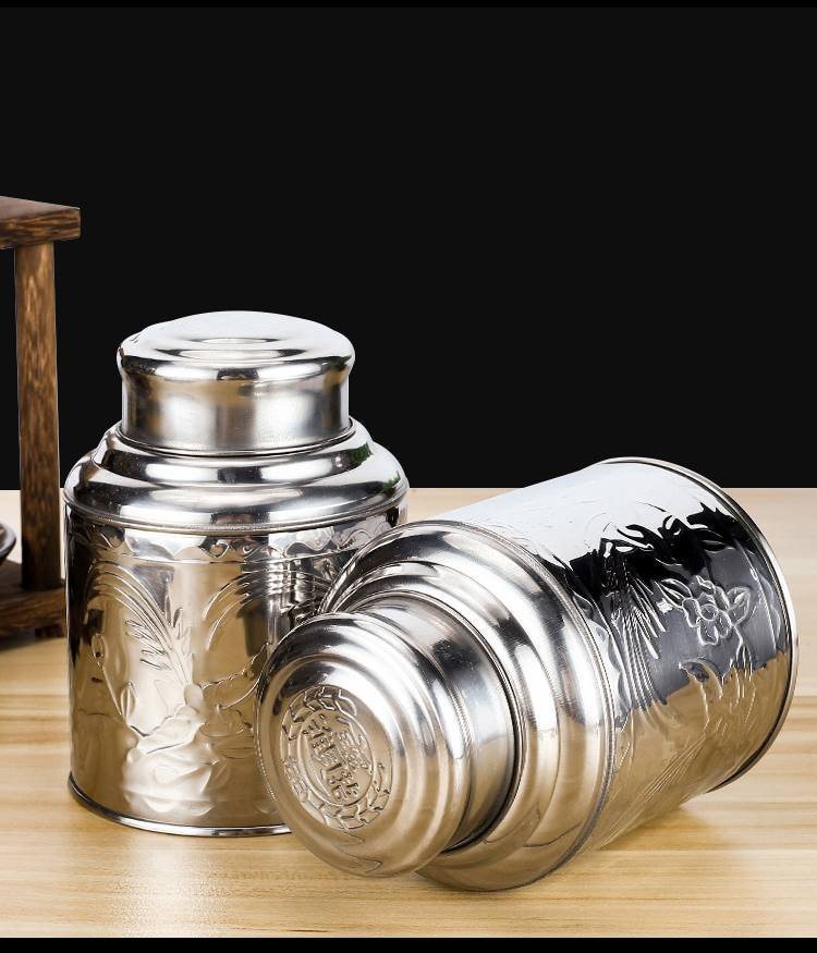 이중 뚜껑 두꺼운 스테인레스 스틸 가정용 차 캔 여행 휴대용 작은 밀봉 캔 대형 빈 차 손으로 그린 알루미늄 합금