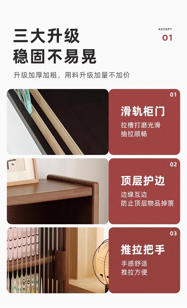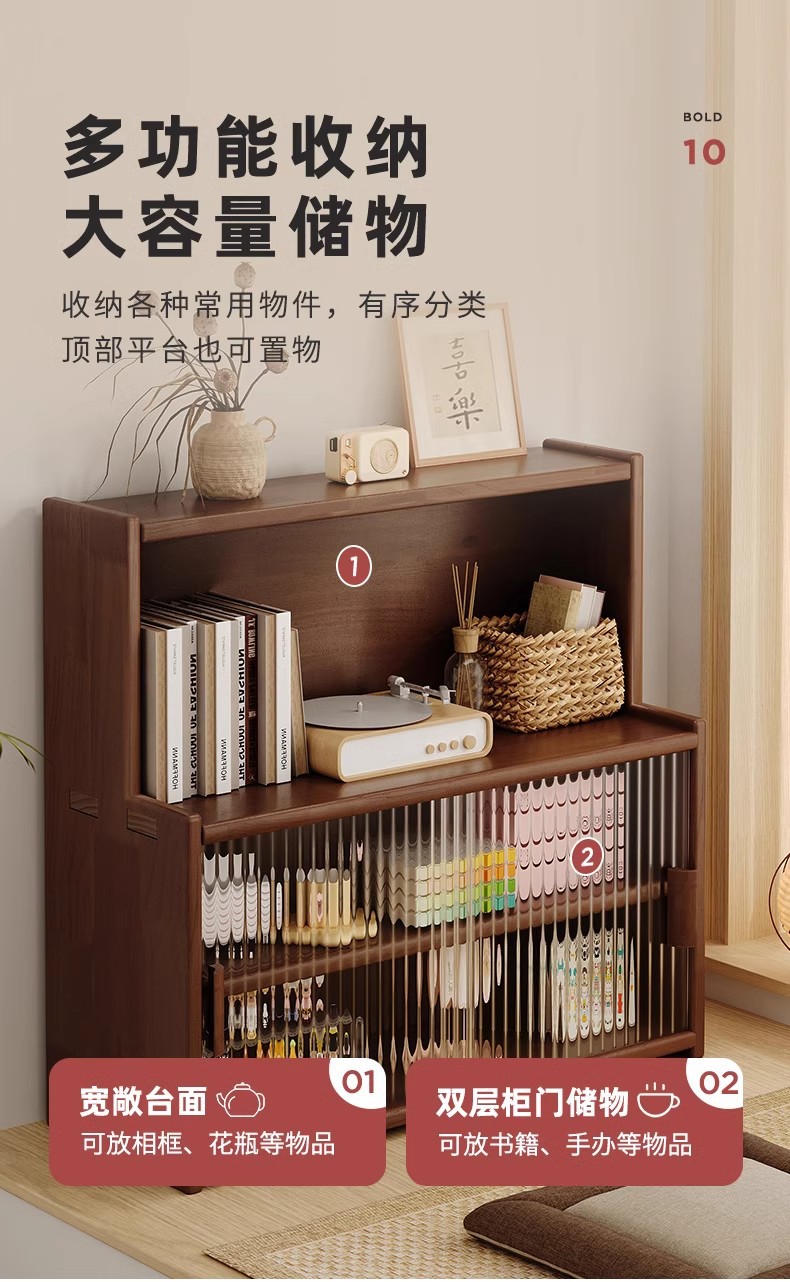 • [소나무 + 검은 호두색 바니시] 3개의 수납공간으로 3겹으로 높고 길어진 Changhong 강화유리 캐비닛 도어 *둥근 모서리