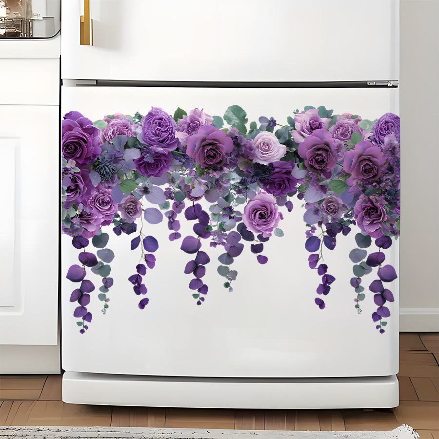 HS3654Q 보라색 장미 덤불 원래 식물 꽃 화장실 스티커 욕실 화장실 자기 접착 장식 스티커