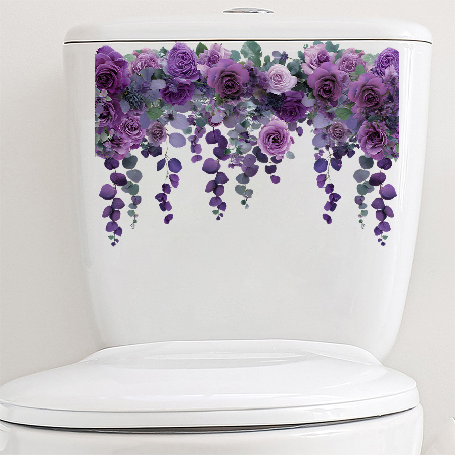 HS3654Q 보라색 장미 덤불 원래 식물 꽃 화장실 스티커 욕실 화장실 자기 접착 장식 스티커스토어 가기
