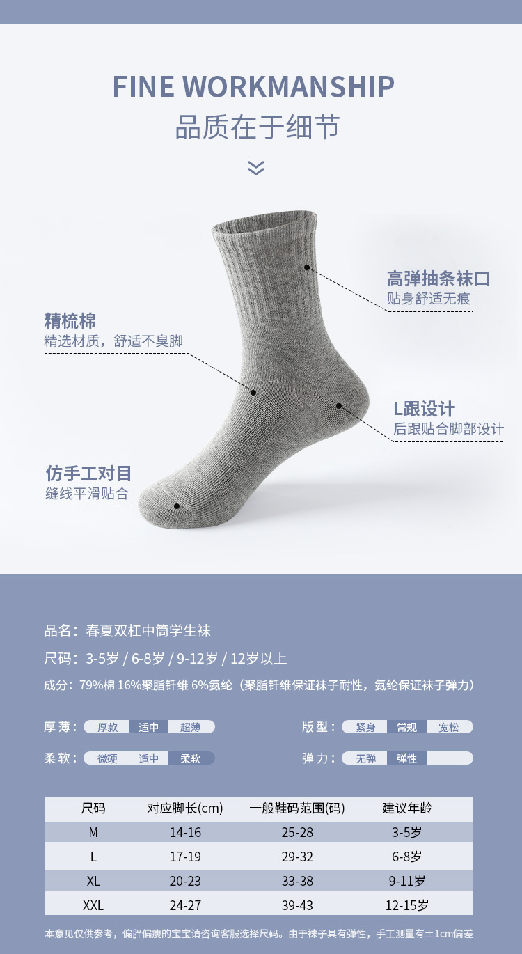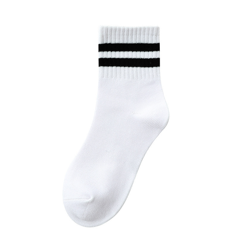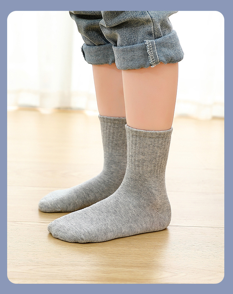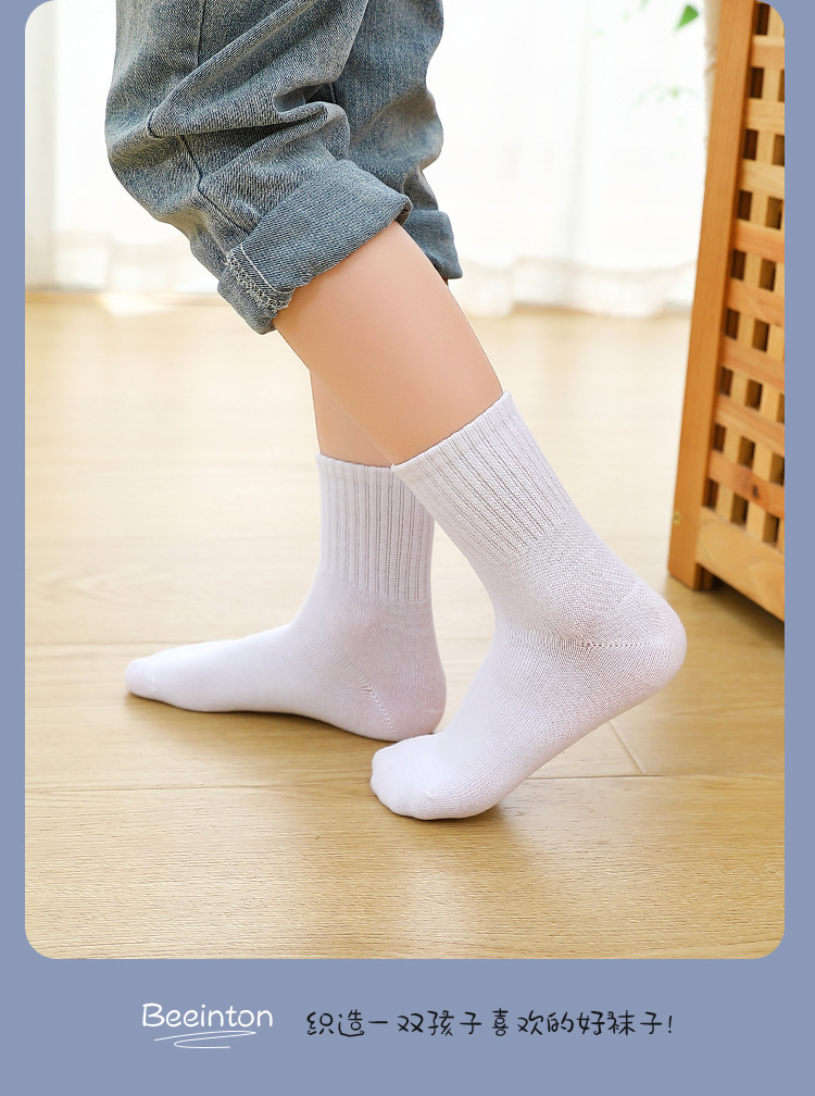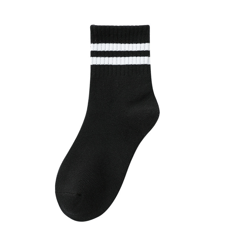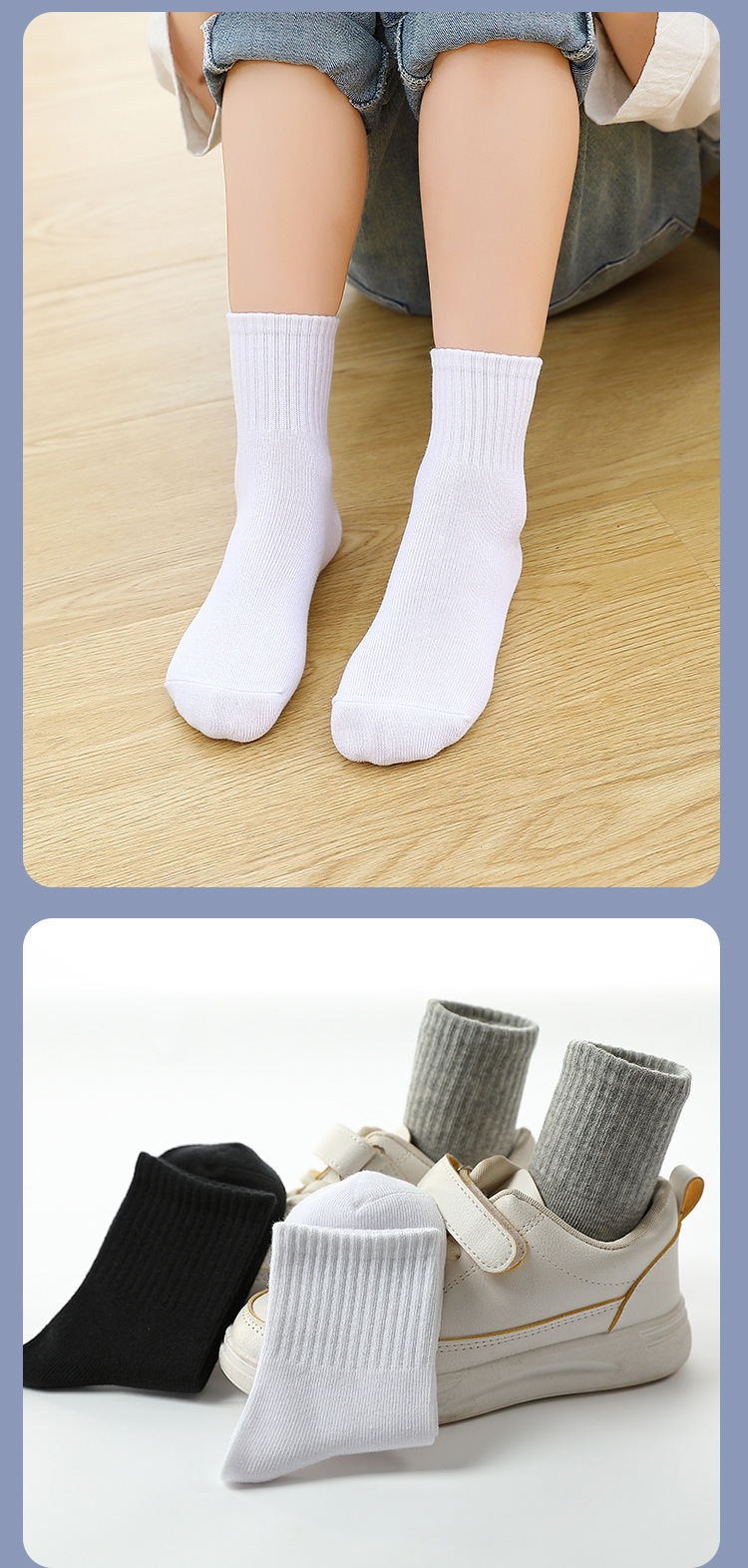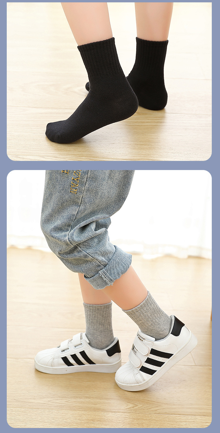 학생 양말 흑백 어린이 양말 면화 봄과 가을 높은 고무 밴드 중간 튜브 단색 초등학교 교복 남학생과 여중생