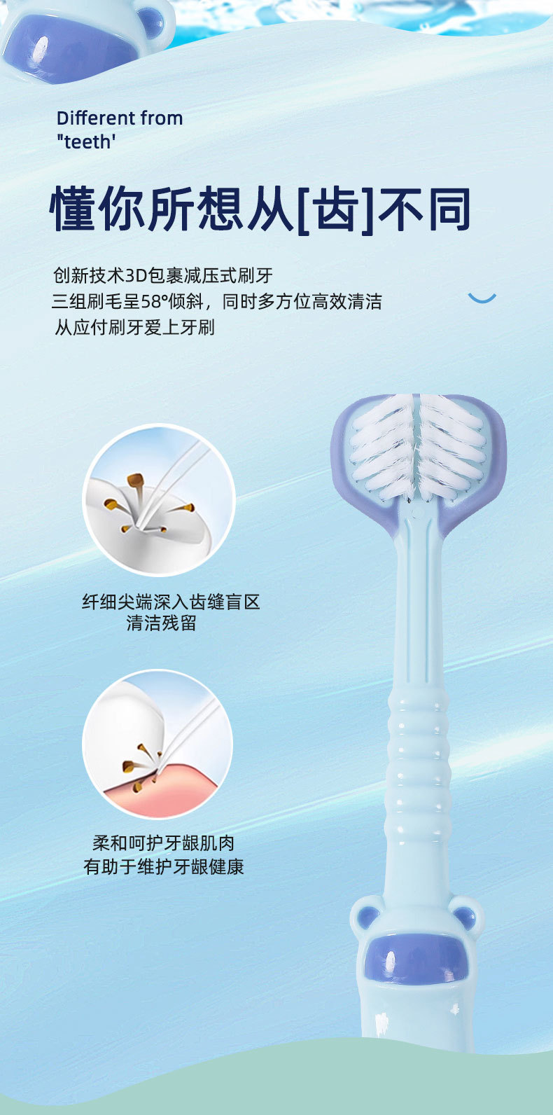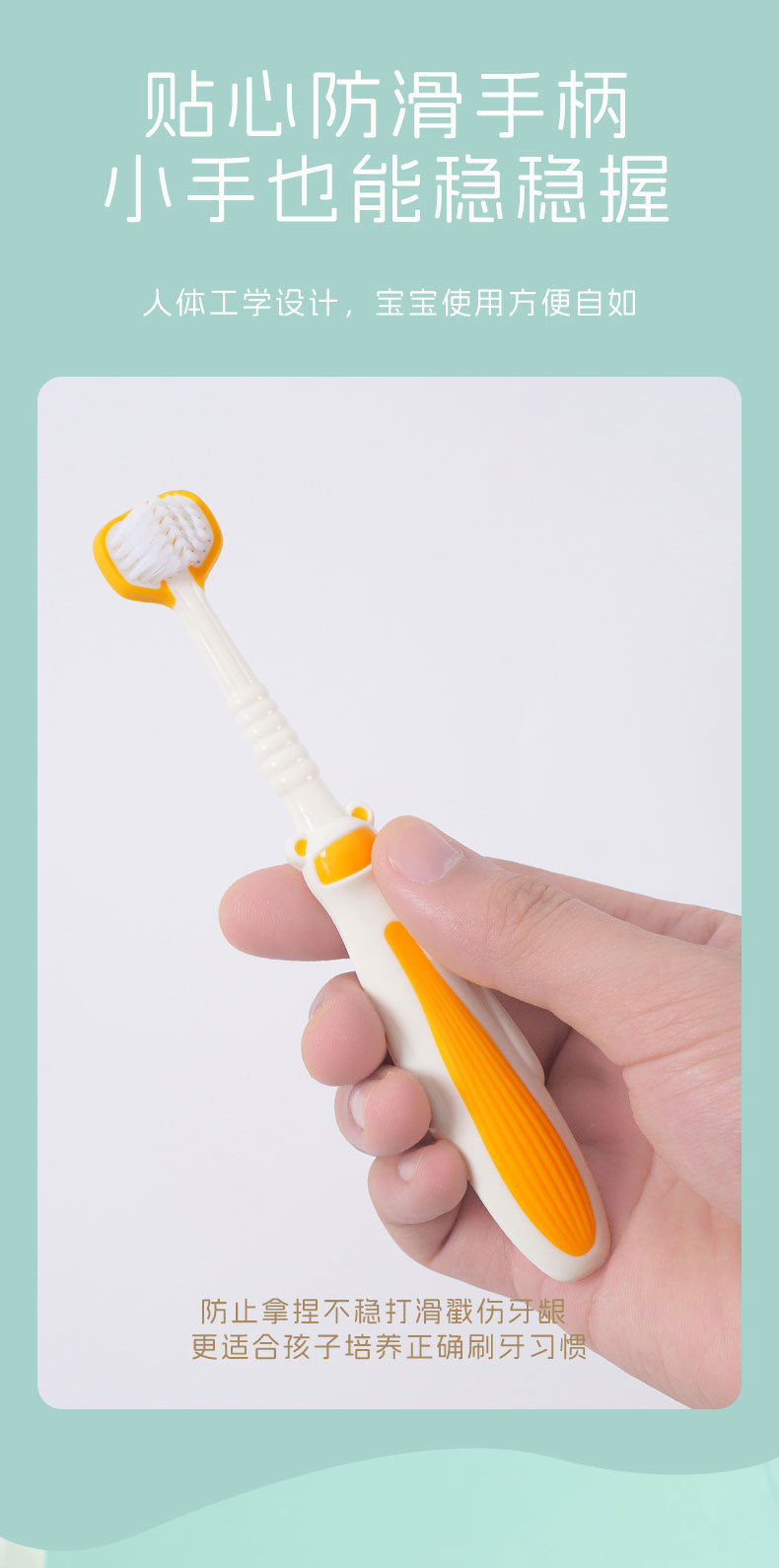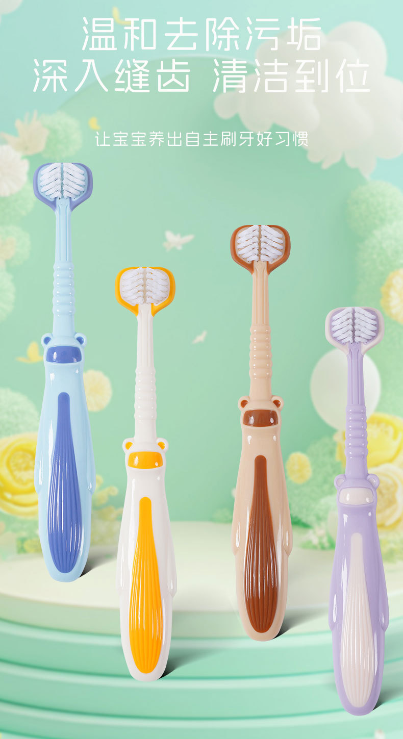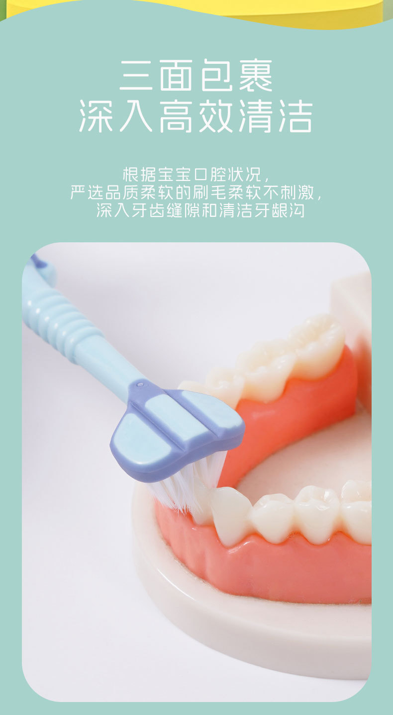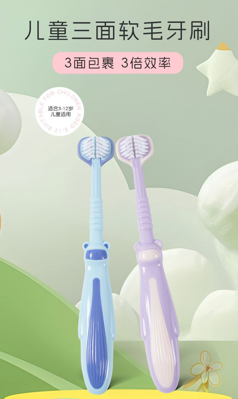 3-12 세 어린이 칫솔 아기 특수 3 면 포장 부드러운 머리 입체 구강 청소 독립적 인 포장