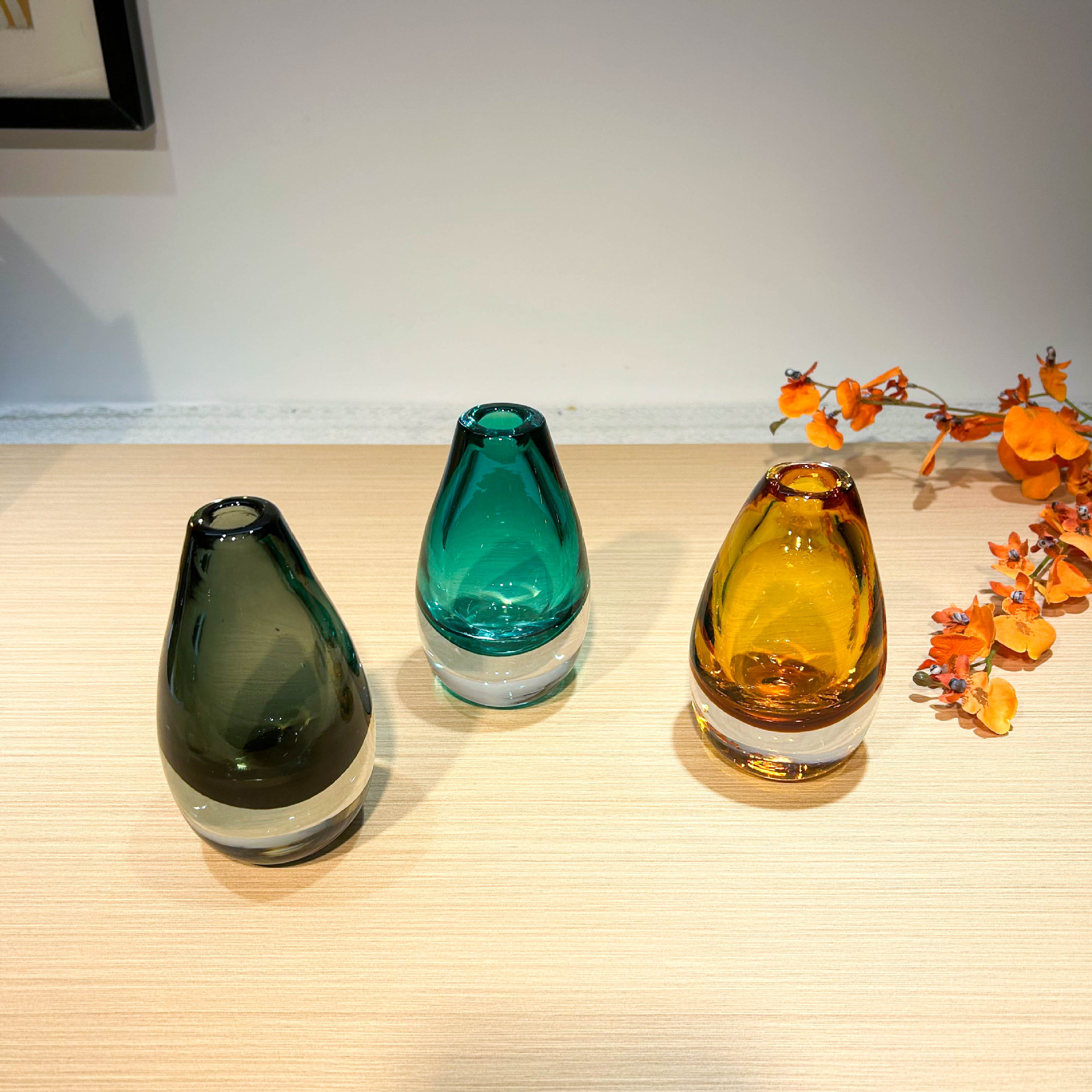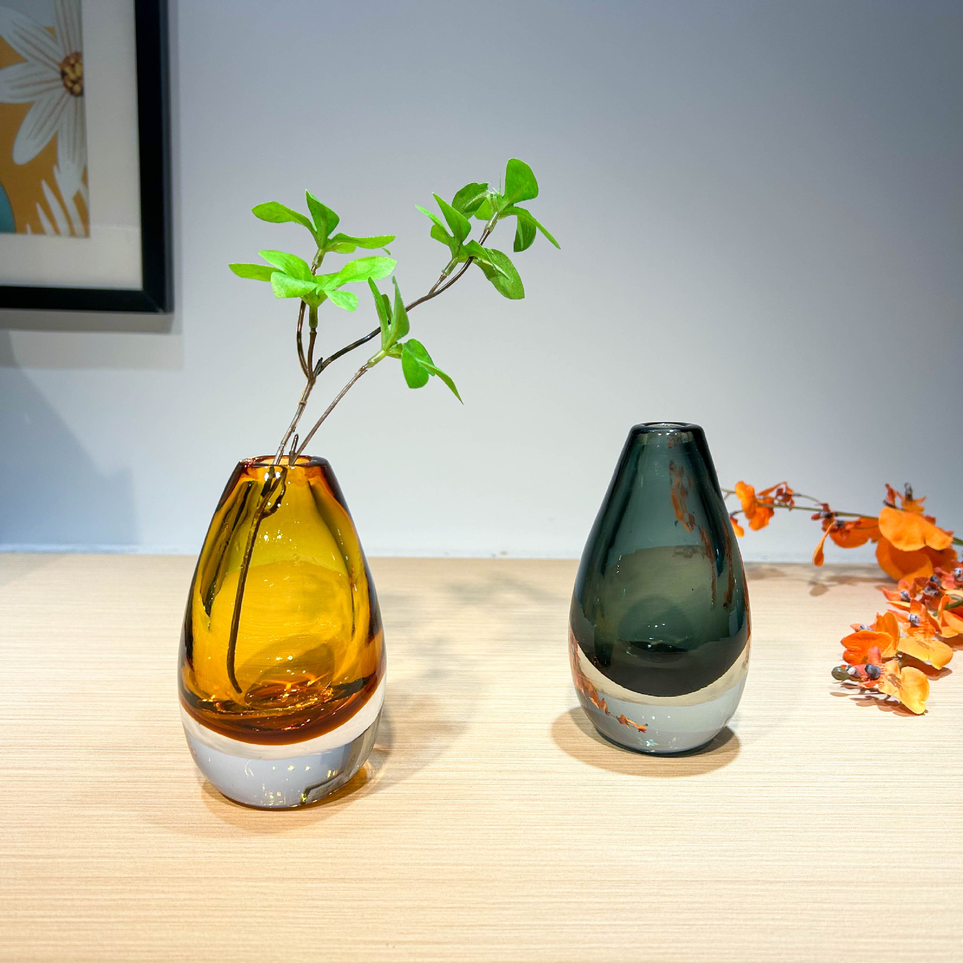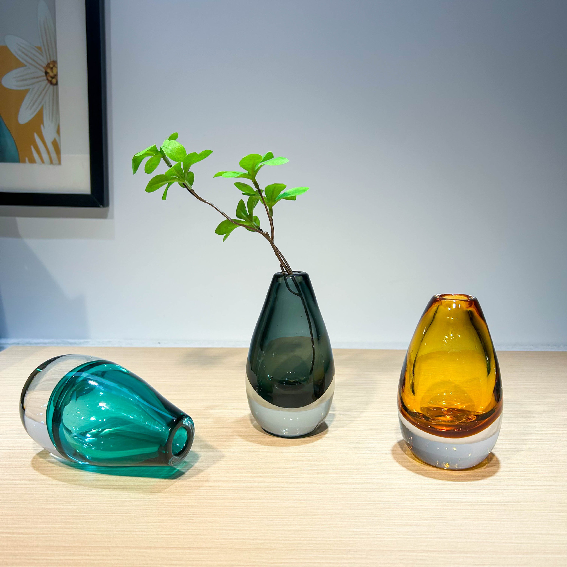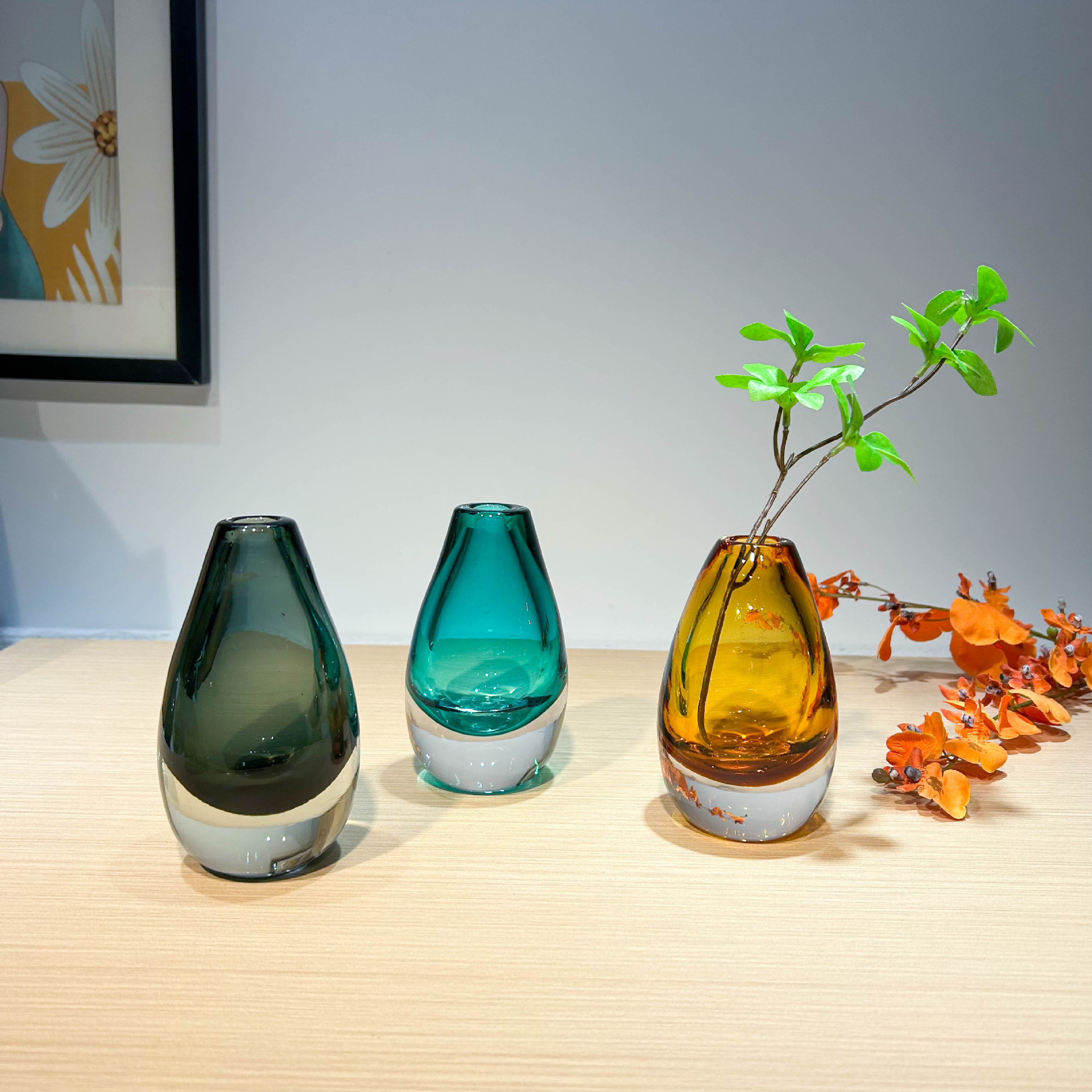 현대적인 가벼운 럭셔리 스타일의 고급 물방울 모양의 꽃병 유리 작은 직경 모델 룸 드레싱 테이블 아로마 테라피 꽃꽂이스토어 가기