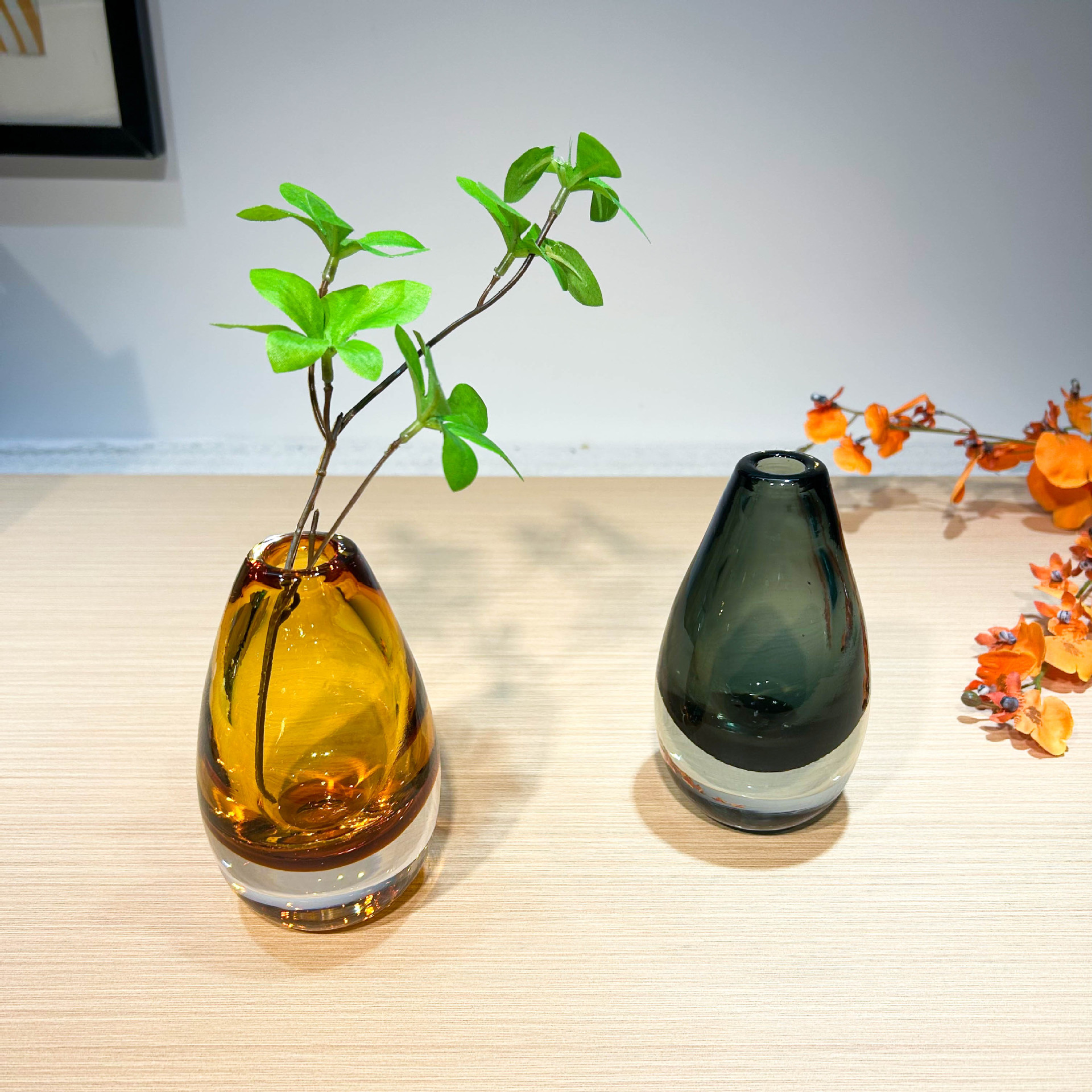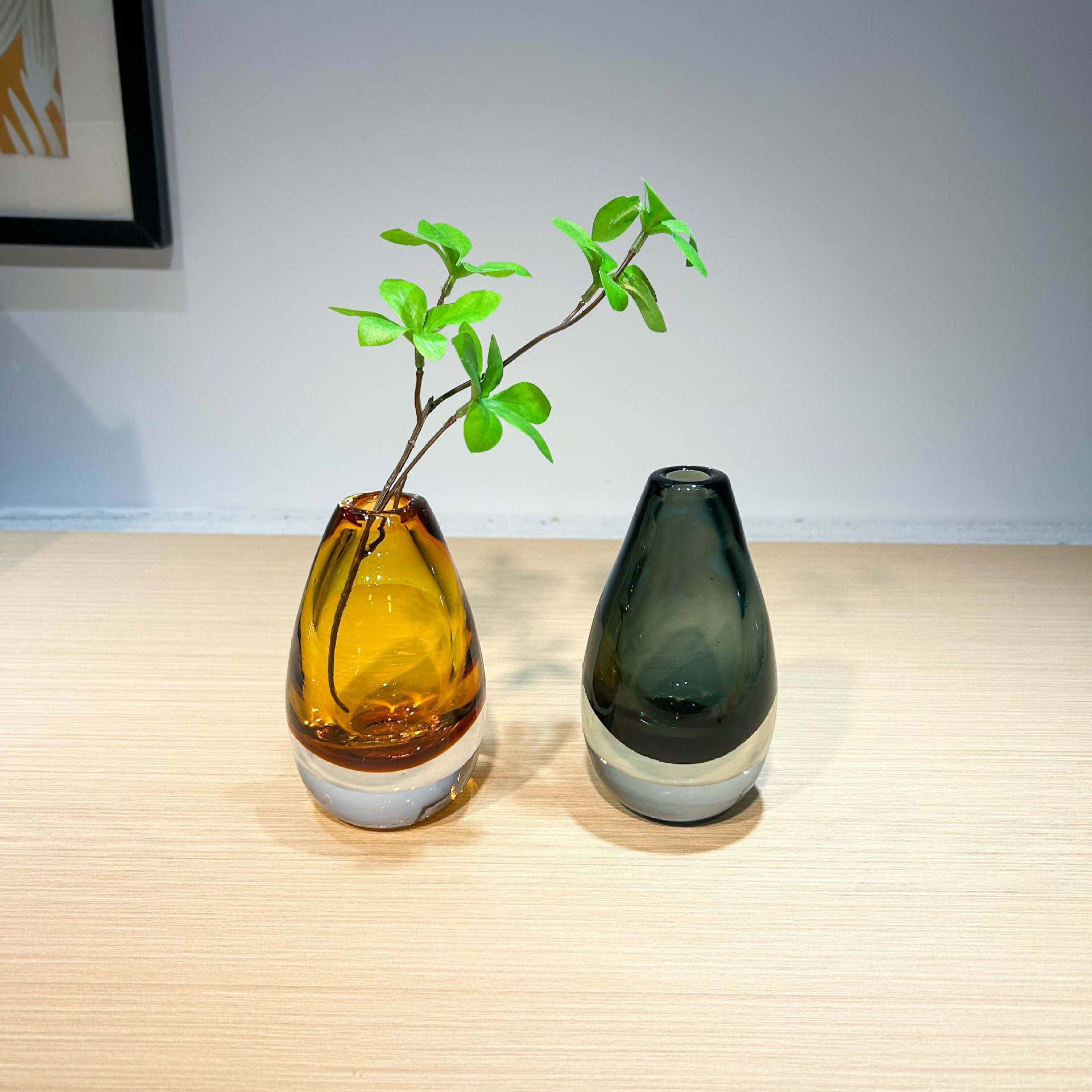 현대적인 가벼운 럭셔리 스타일의 고급 물방울 모양의 꽃병 유리 작은 직경 모델 룸 드레싱 테이블 아로마 테라피 꽃꽂이