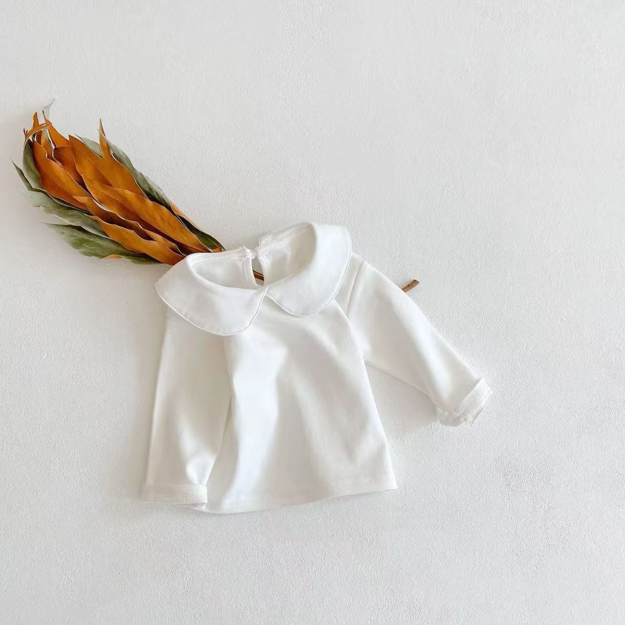 • 흰색 인형 칼라 바닥 셔츠