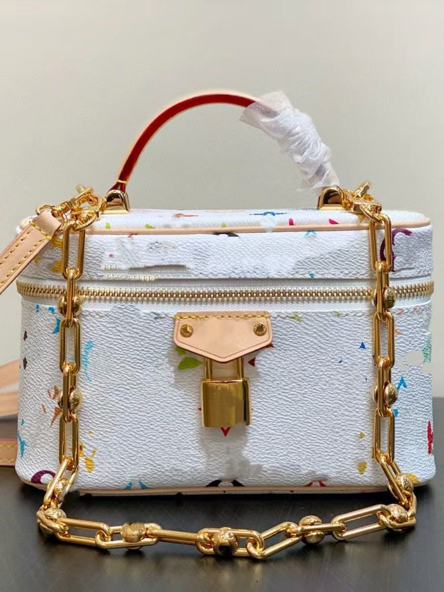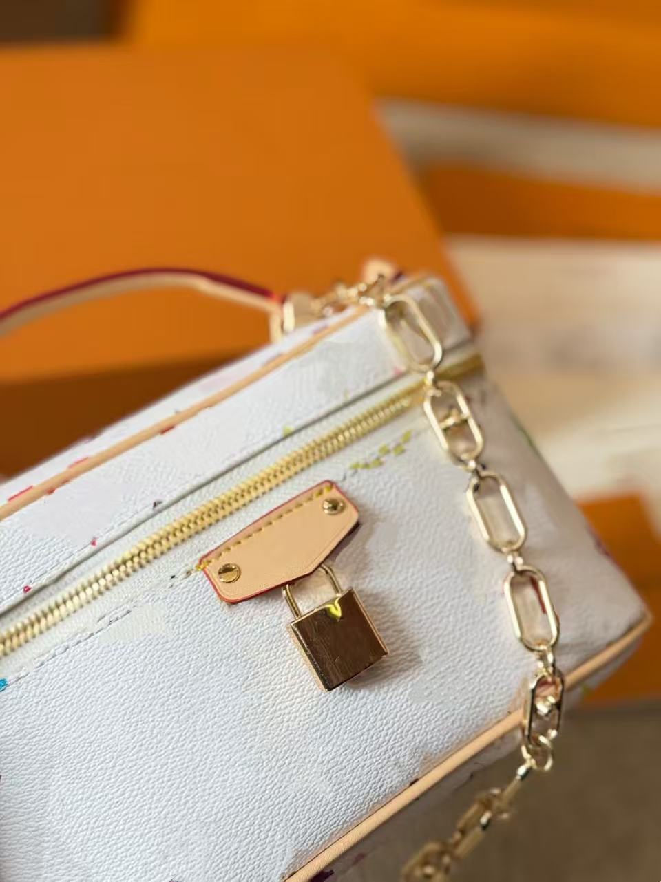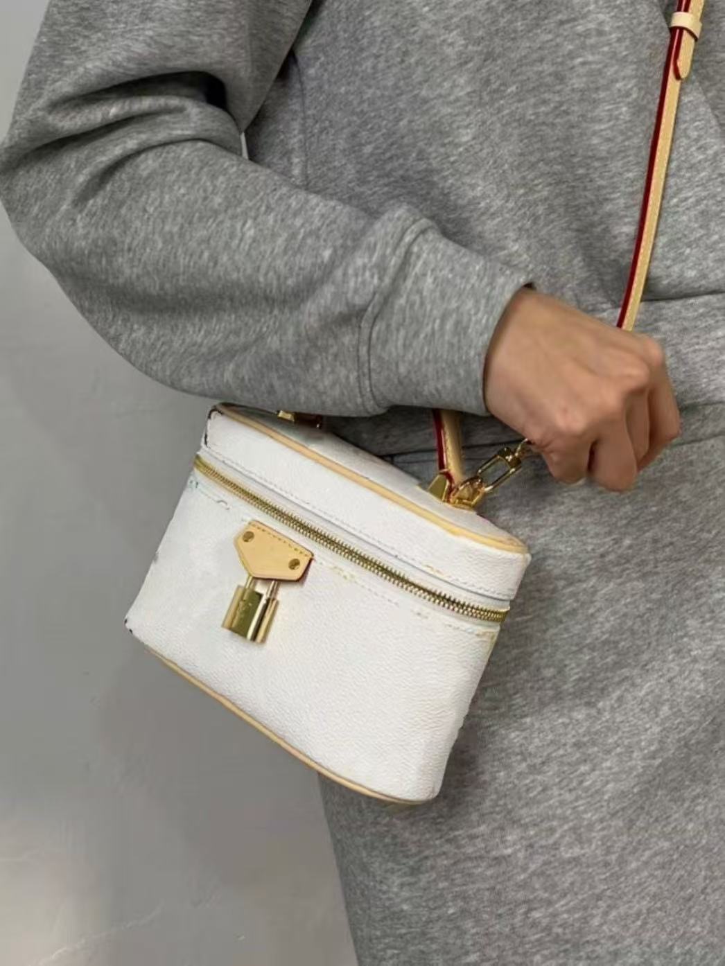 2025 새로운 공동 화이트 트라이 컬러 화장품 가방 상자 가방 크로스 바디 어깨 가방 핸드백스토어 가기
