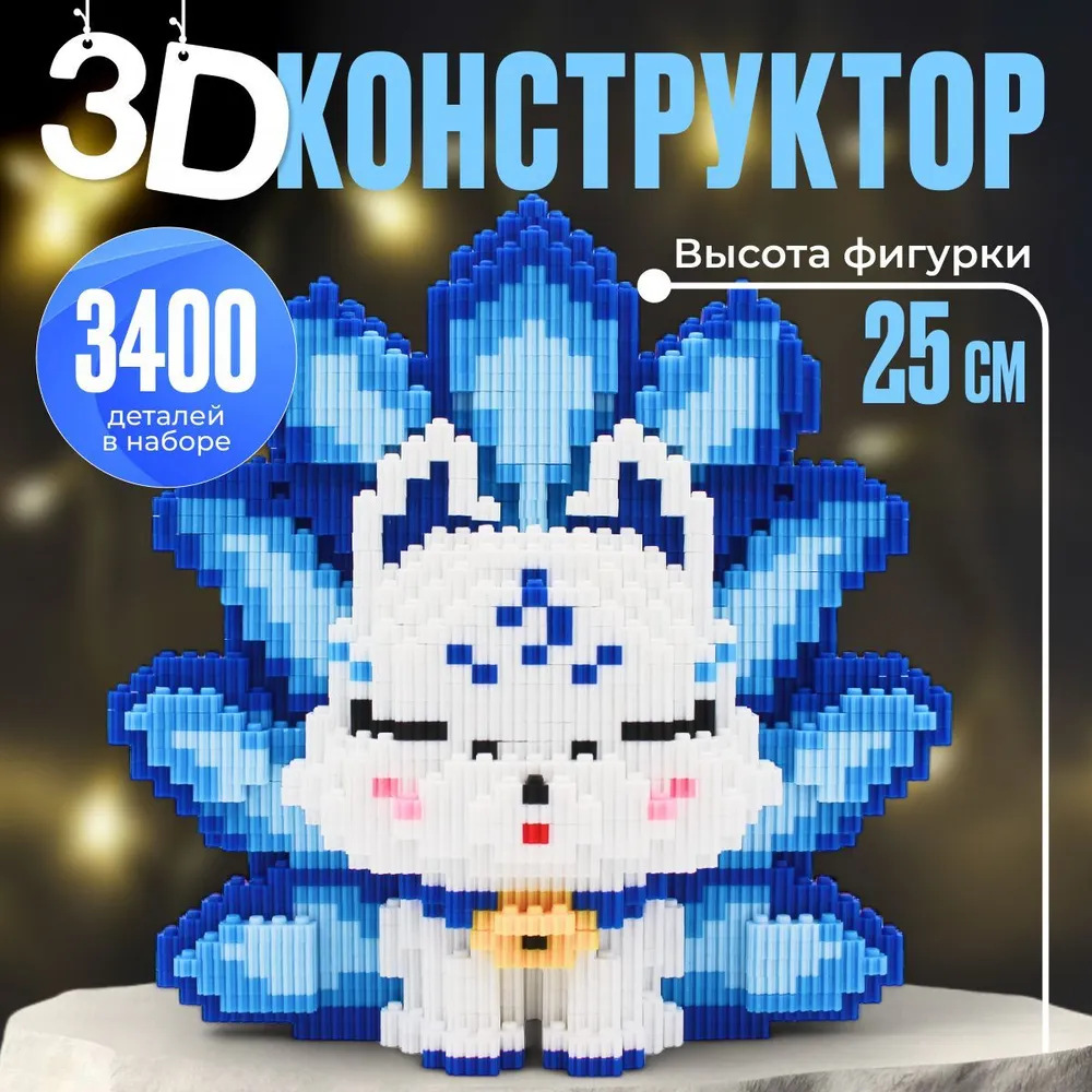 • 25cm 3400pcs 파란색 구미호 + 빌딩 블록 해머