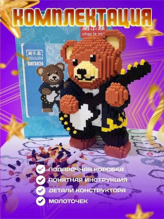 • 29cm 6000PCS 잠옷 테디 베어 + 빌딩 블록 해머