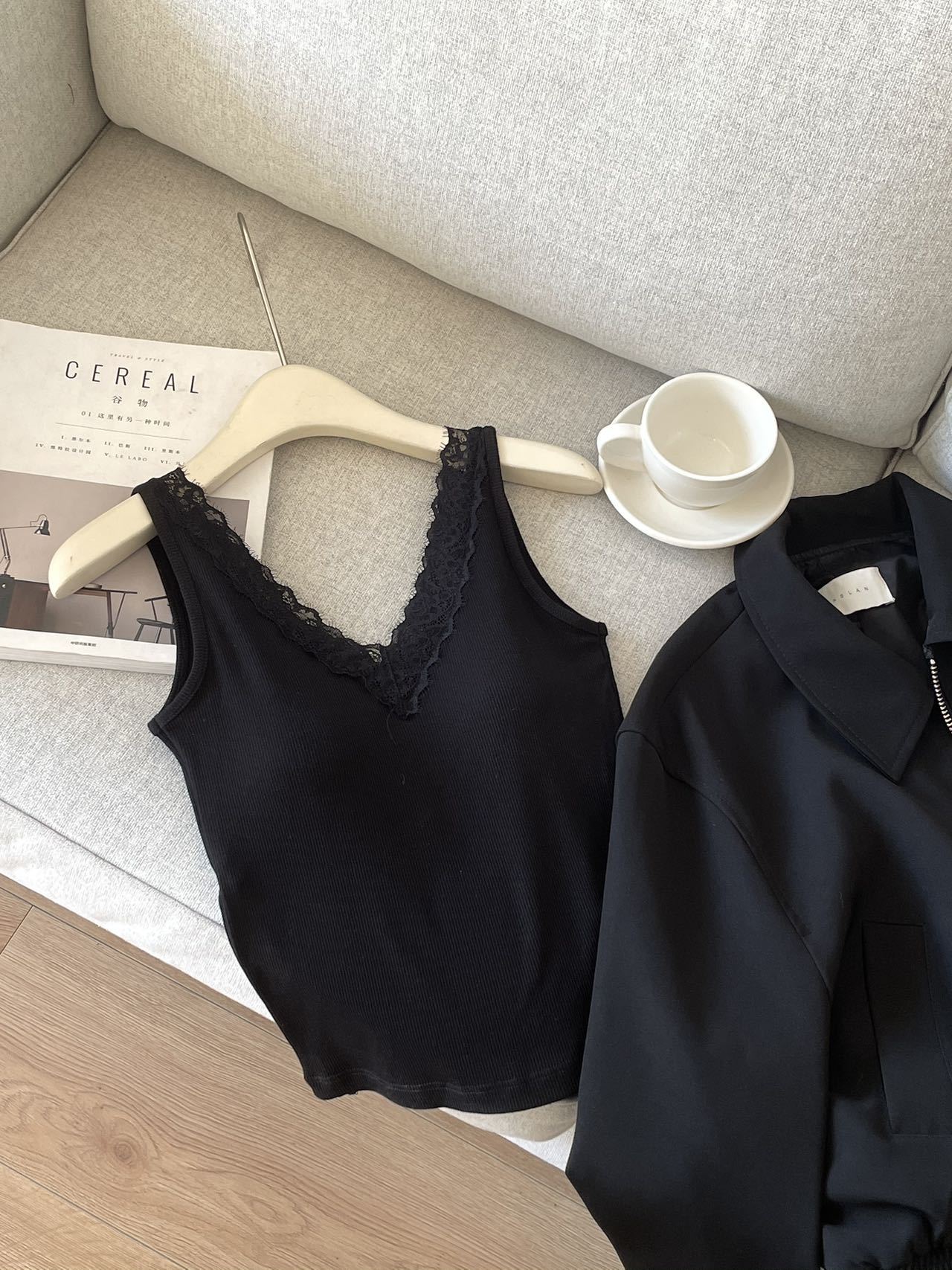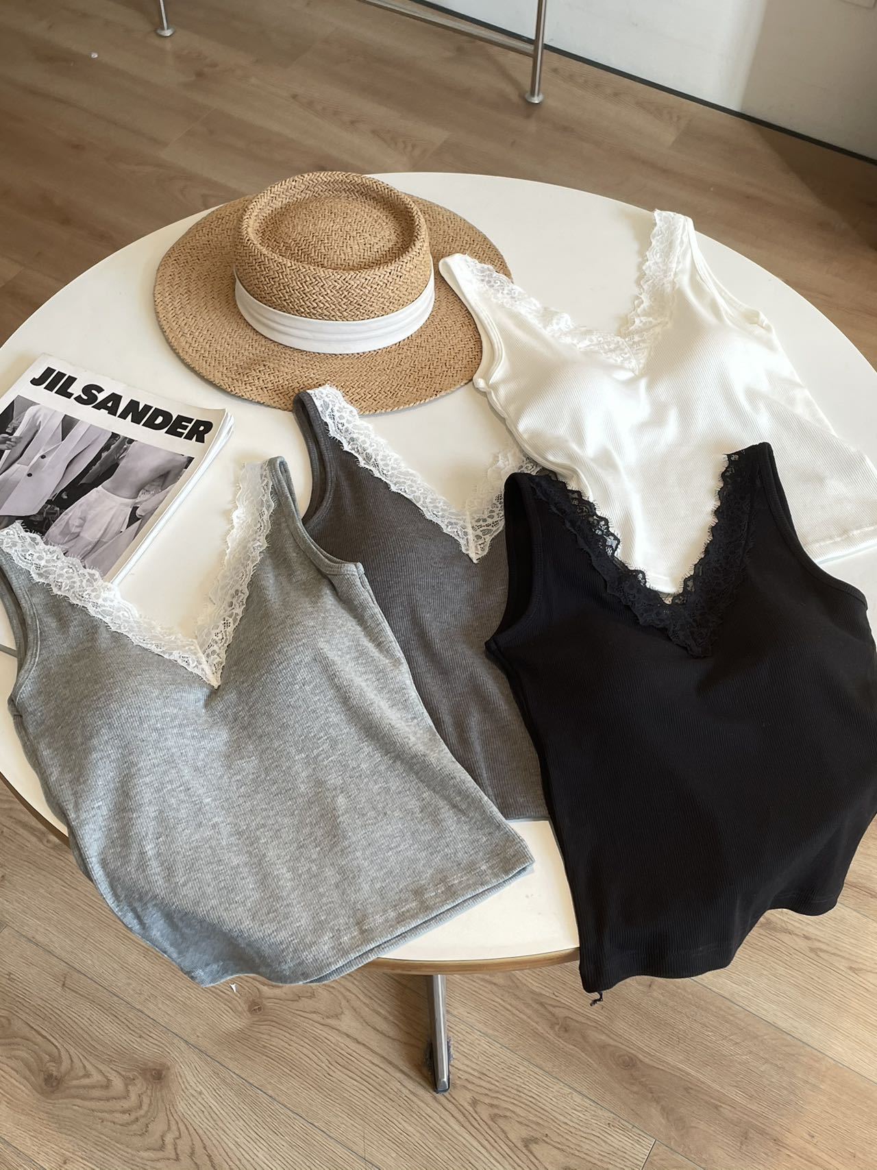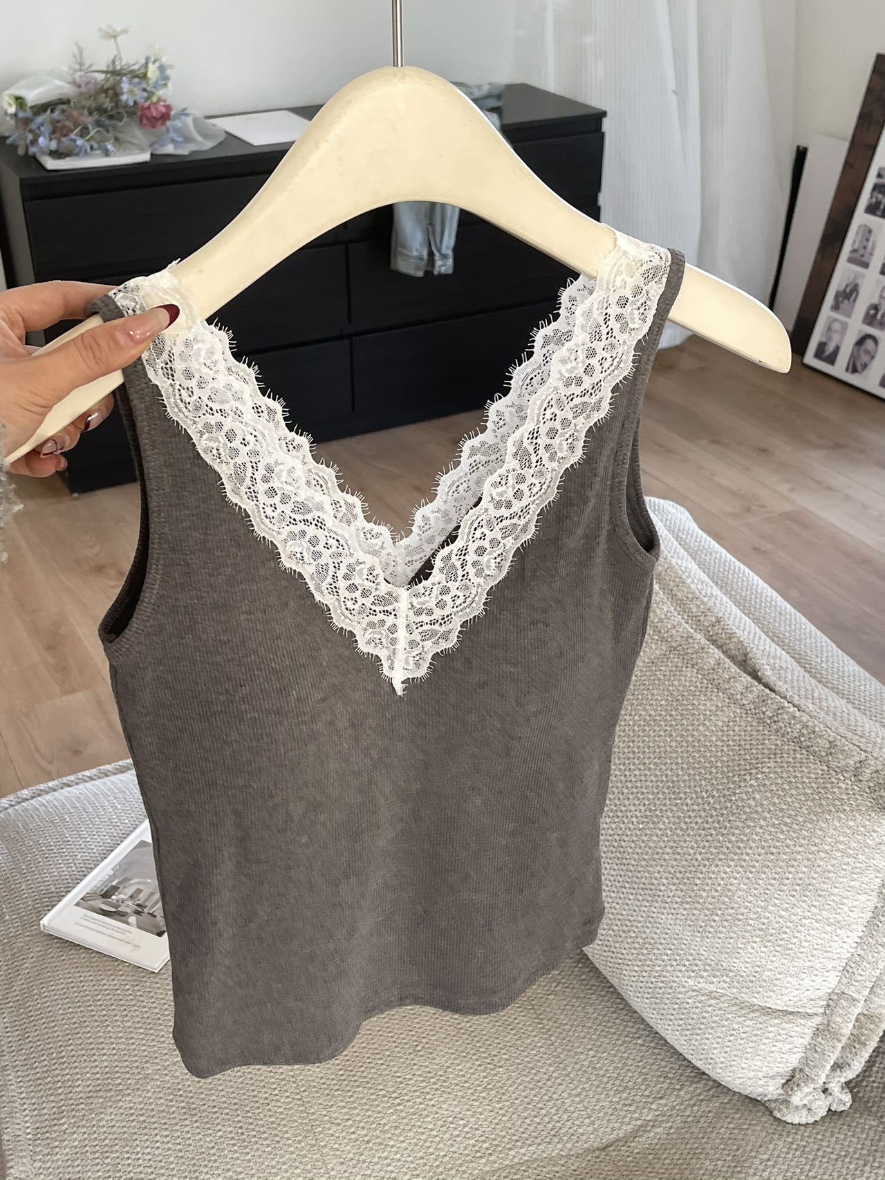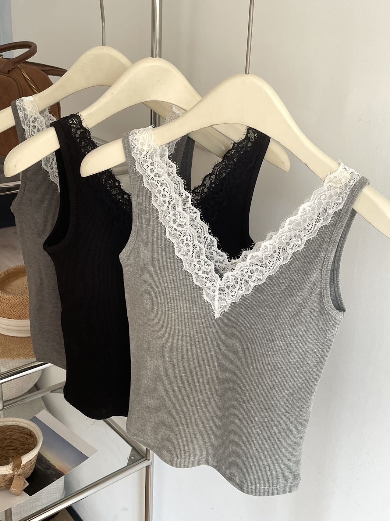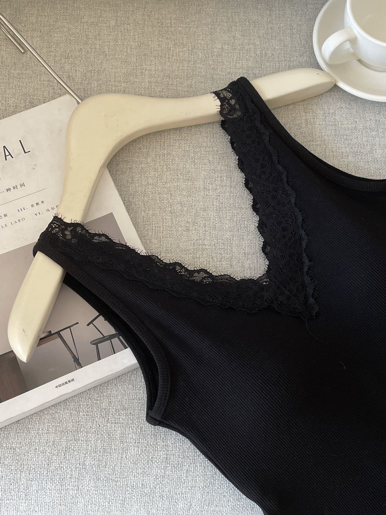 8801·早春V领蕾丝花边吊带