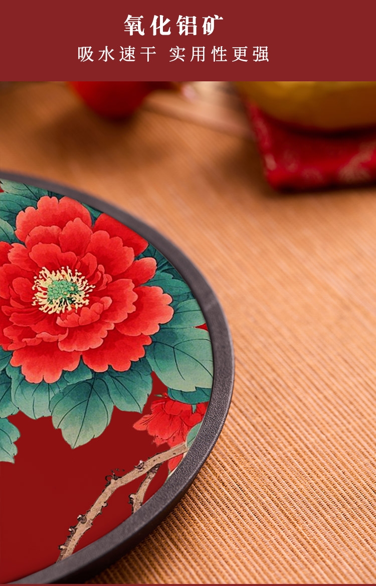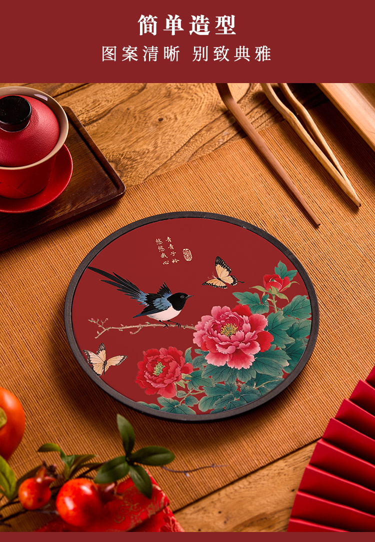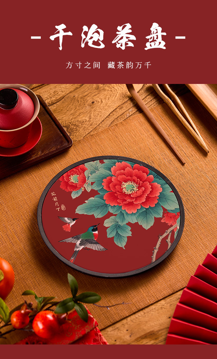 새로운 중국 스타일 라운드 축제 차 트레이 레드 홈 차 세트 트레이 컵 보관 건조 버블 테이블 티 룸 티 테이블 고급스토어 가기