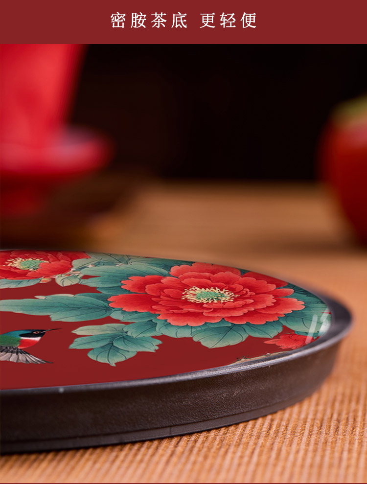 새로운 중국 스타일 라운드 축제 차 트레이 레드 홈 차 세트 트레이 컵 보관 건조 버블 테이블 티 룸 티 테이블 고급