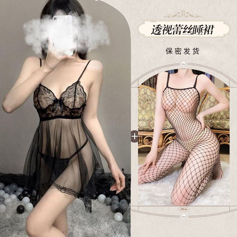 • 블랙 [잠옷+귀여운 레이스 3점 스타일]