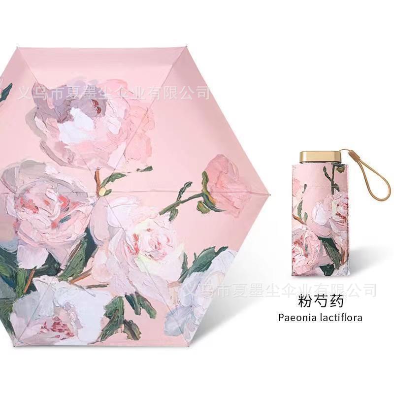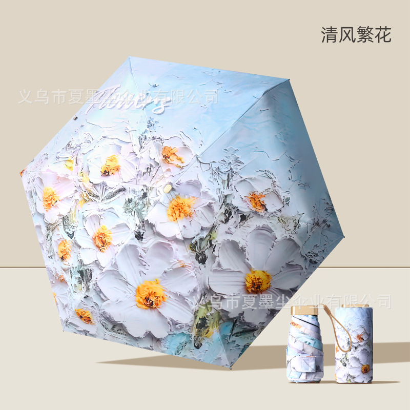 소형 휴대용 초경량 5 배 인쇄 카드 우산 자외선 보호 슈퍼 태양 및 비 보호 이중 사용 햇빛 우산