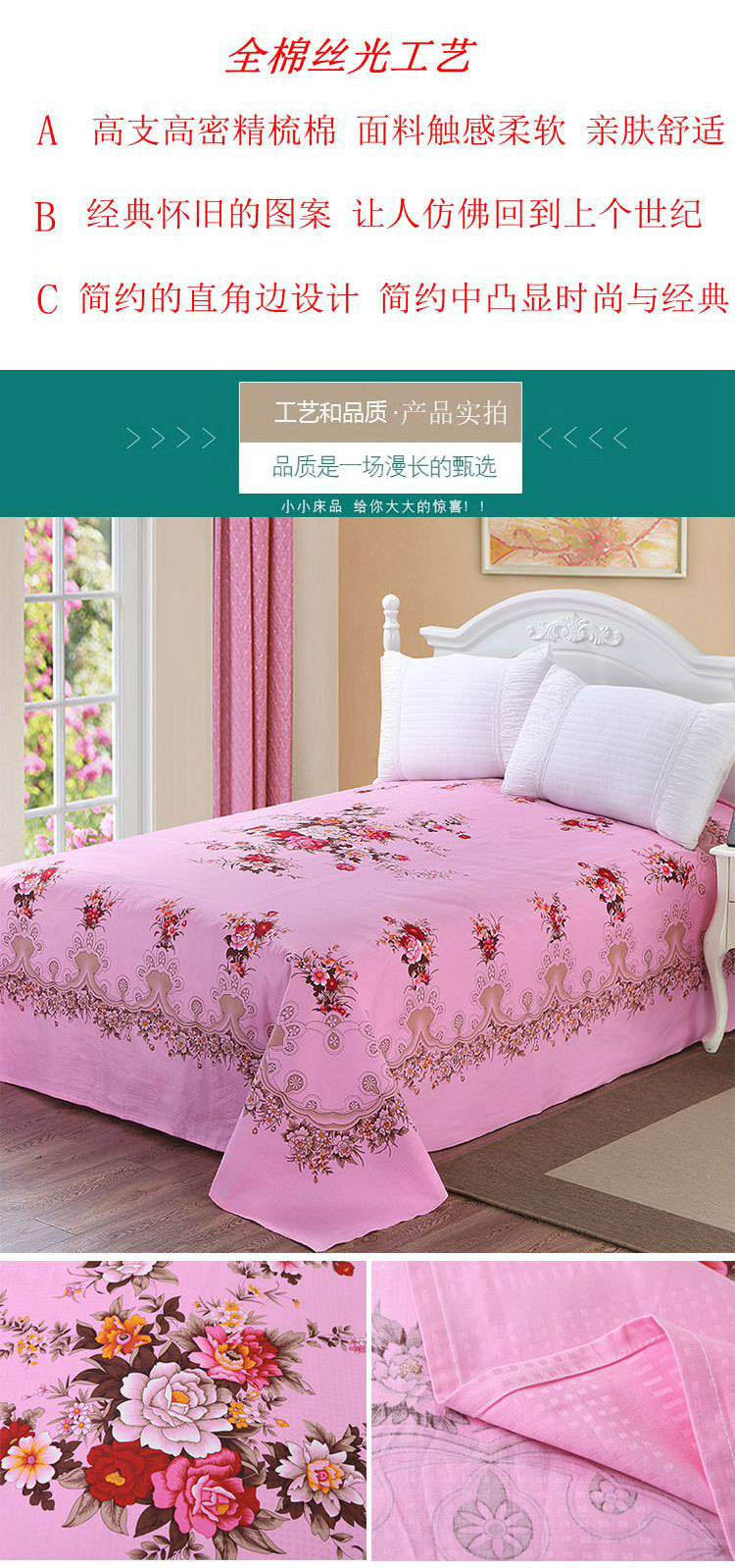 상하이 100 면 구식 국가 침대 시트 면화 면화 사계절 가정용 싱글 더블 시트 도매스토어 가기