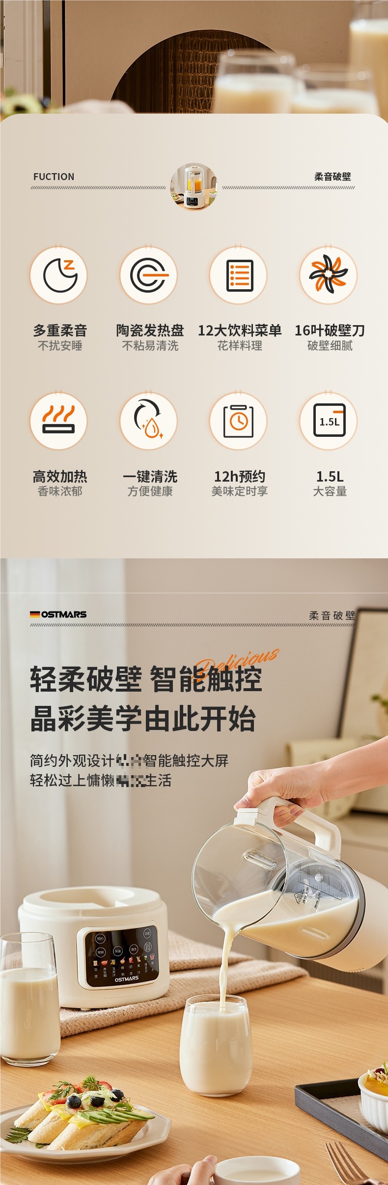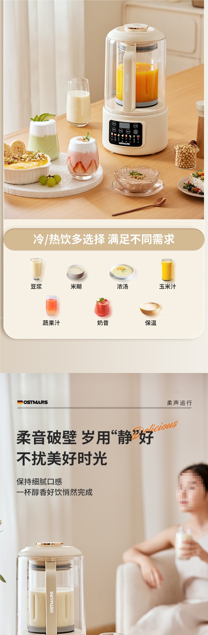 OSTMARS 벽 파괴 기계 3-4 명 가정용 다기능 부드러운 소리 대용량 가열 식품 보충제 주스 두유 기계