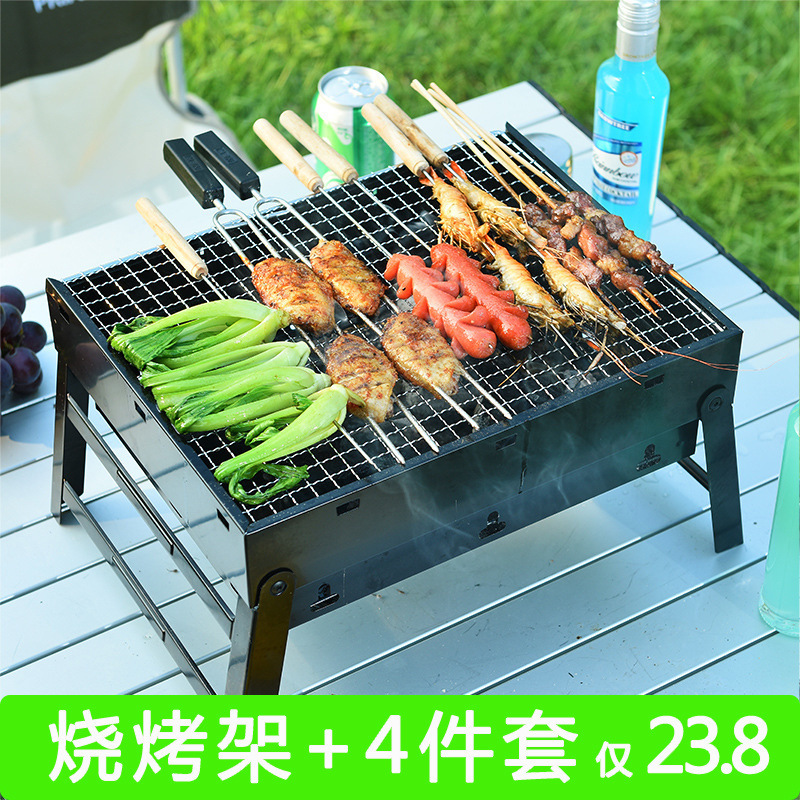 야외 바베큐 그릴 숯불 바베큐 스토브 가정용 휴대용 바베큐 두꺼운 바베큐 상자 도구 3~6인용 풀 세트스토어 가기