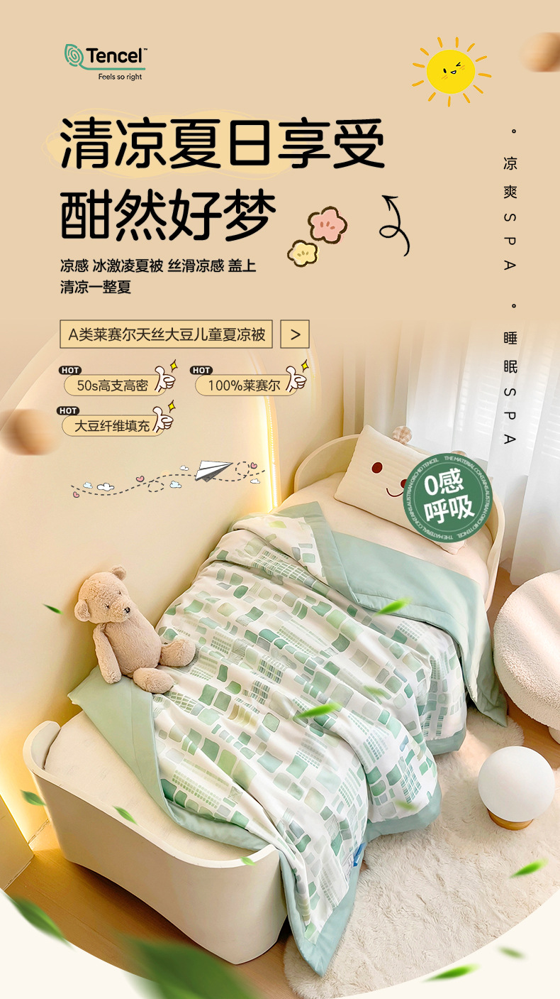 클래스 A 모성 및 유아 등급 Lyocell Tencel 어린이 여름 시원한 소매 유치원 낮잠 아기 콩 섬유 여름 소매 A