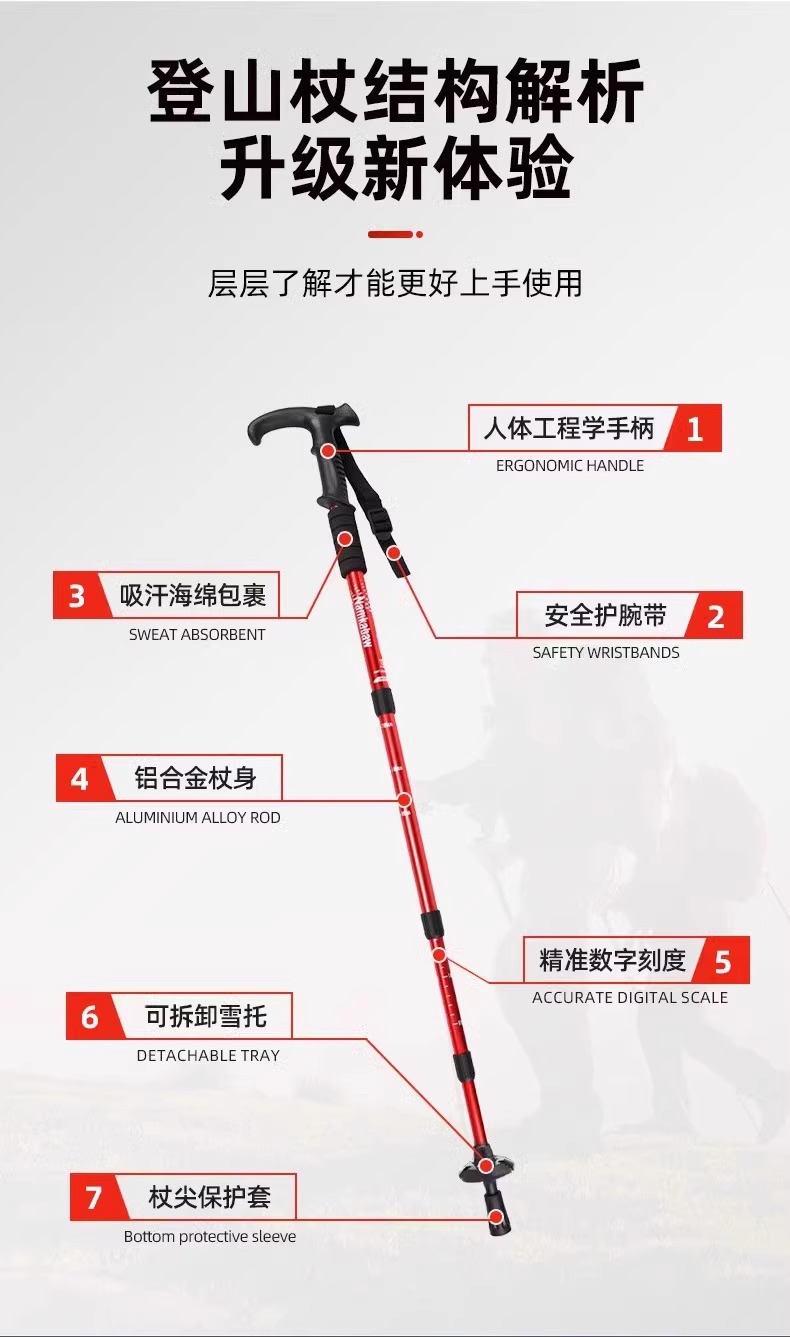 등산 스틱 개폐식 접이식 전문 야외 하이킹 스틱 목발 등반 장비 남성과 여성의 미끄럼 방지스토어 가기
