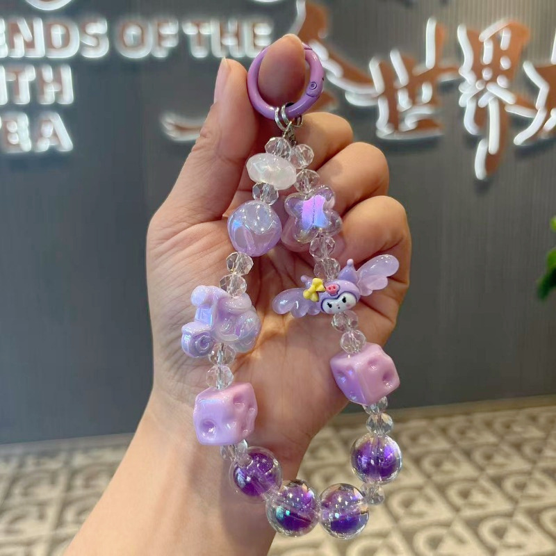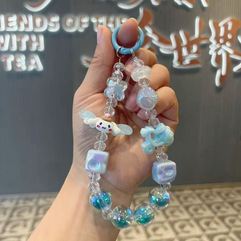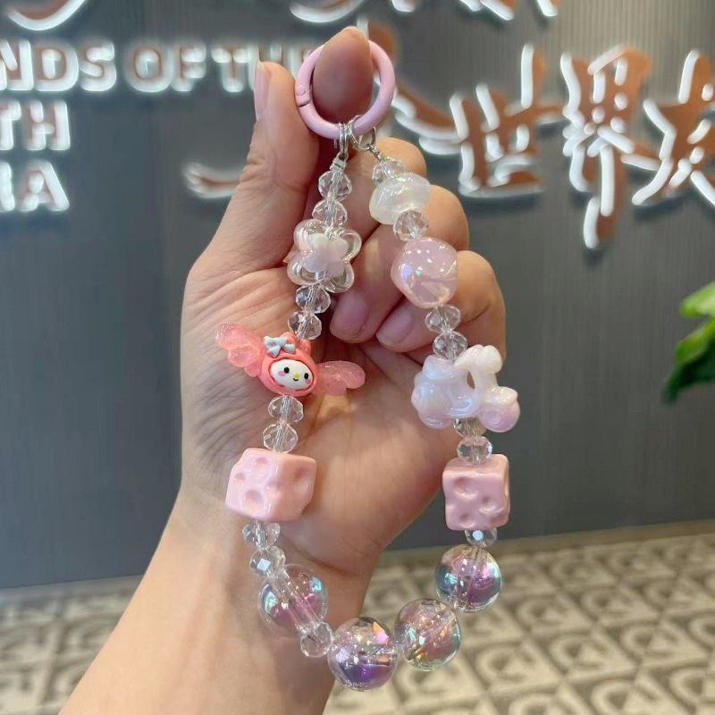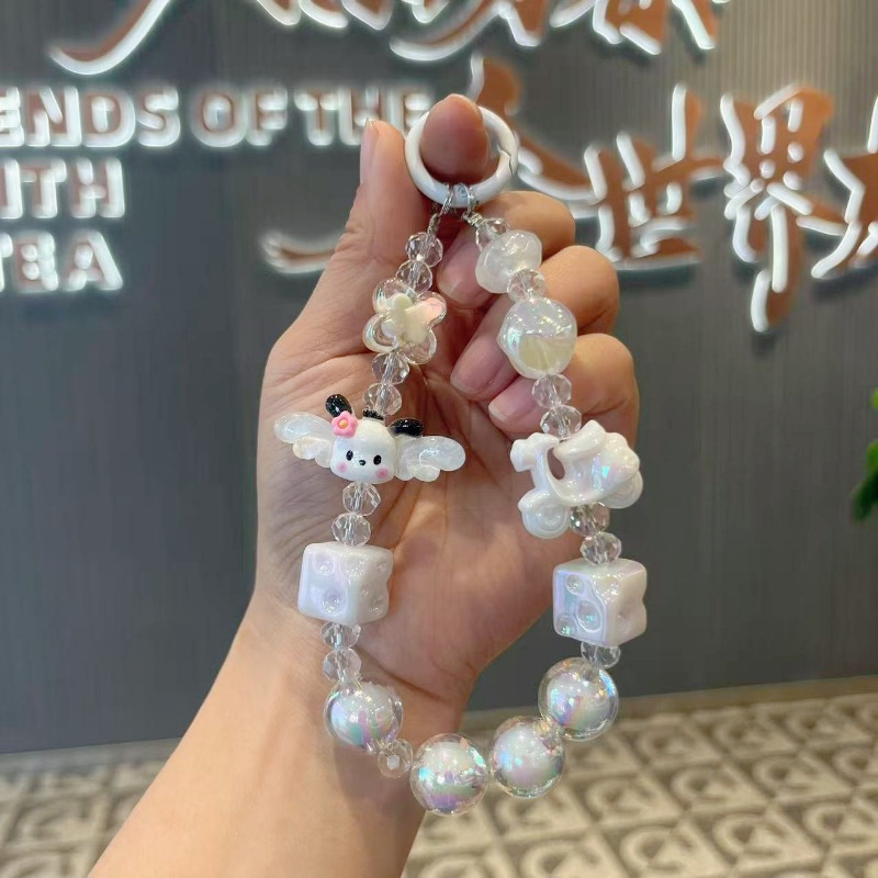 도매 만화 강아지 날개 구슬 키 체인 손목 짧은 키 체인 국경 여성 휴대 전화 끈스토어 가기