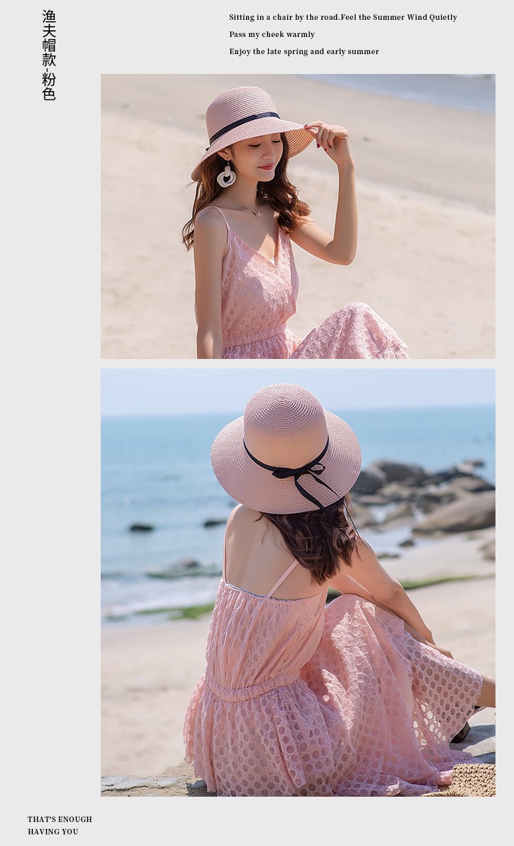 새로운 여름 밀짚 모자 여성 패션 어부 차양 해변 모자 여행 휴일 접이식 태양 모자