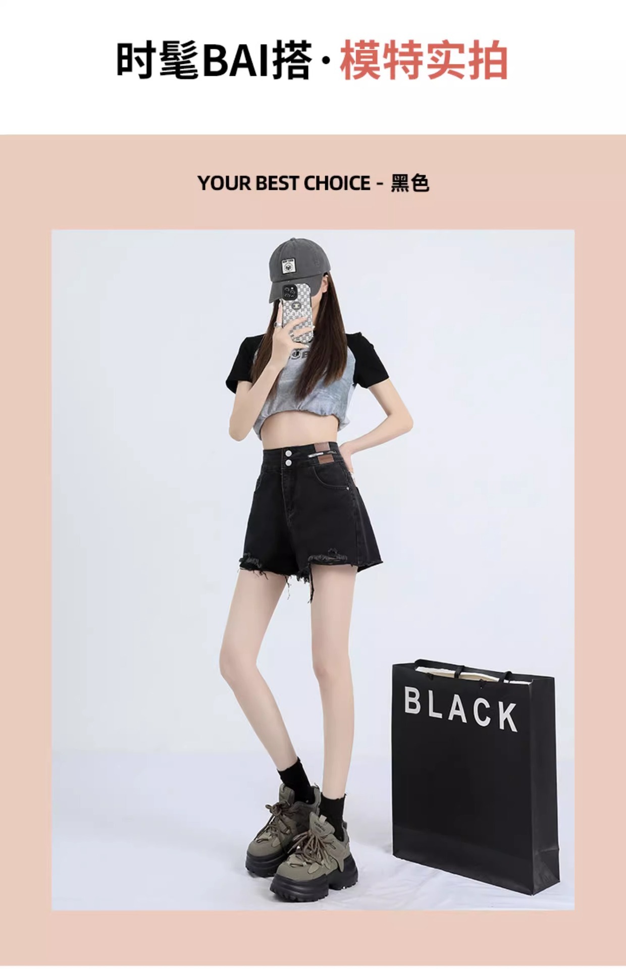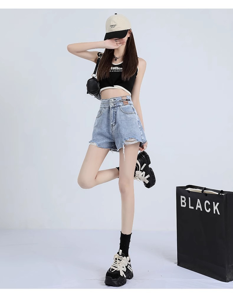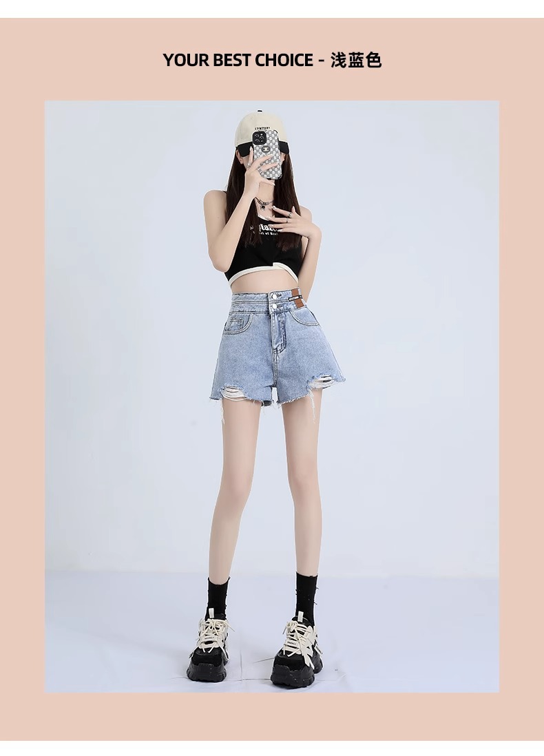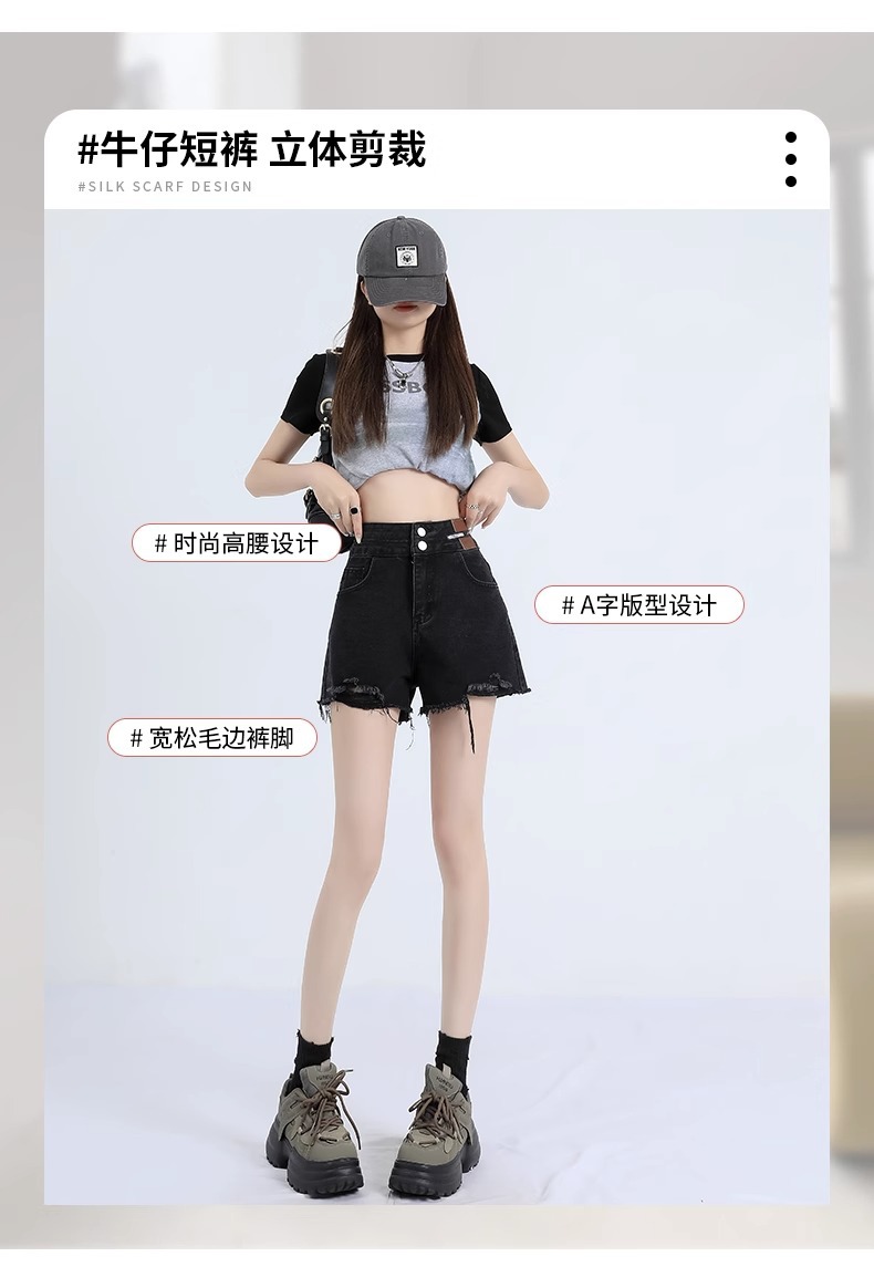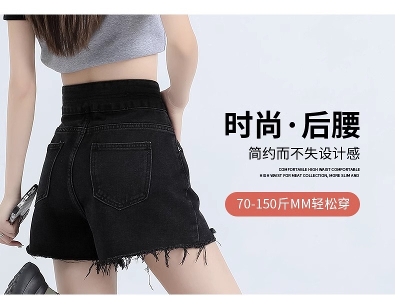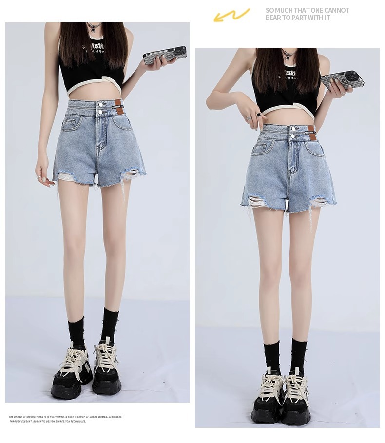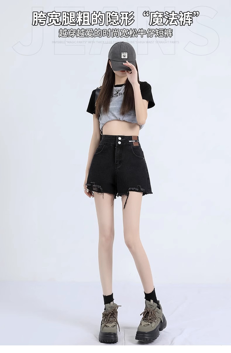 찢어진 데님 반바지 2025 년 여성 여름 통통녀 플러스 사이즈 새로운 폭발 높은 허리 슬림 A 자형 넓은 다리 핫 바지스토어 가기
