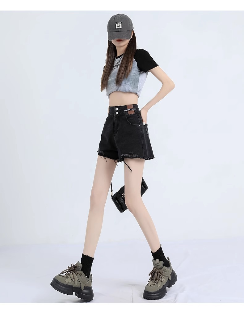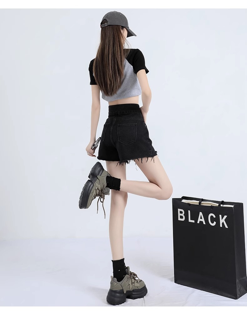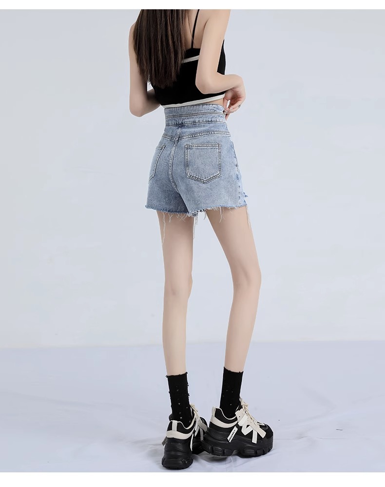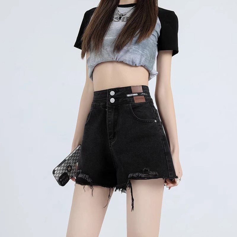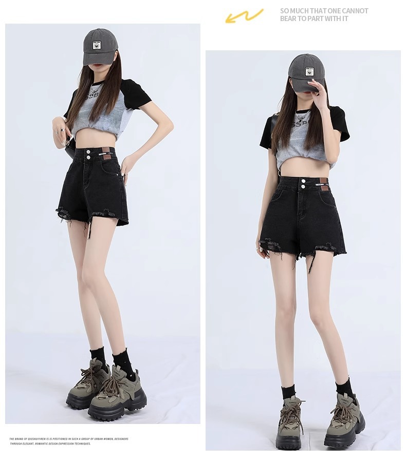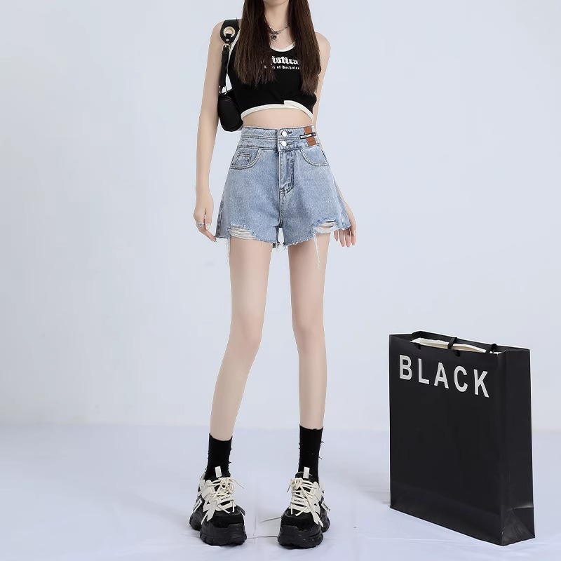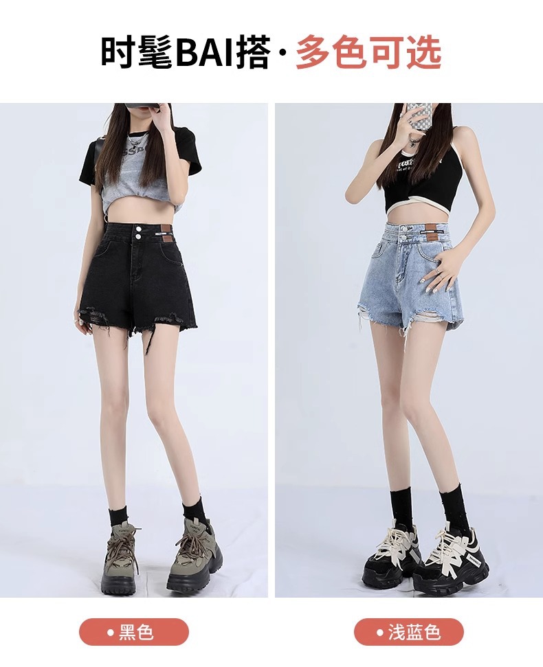 찢어진 데님 반바지 2025 년 여성 여름 통통녀 플러스 사이즈 새로운 폭발 높은 허리 슬림 A 자형 넓은 다리 핫 바지스토어 가기