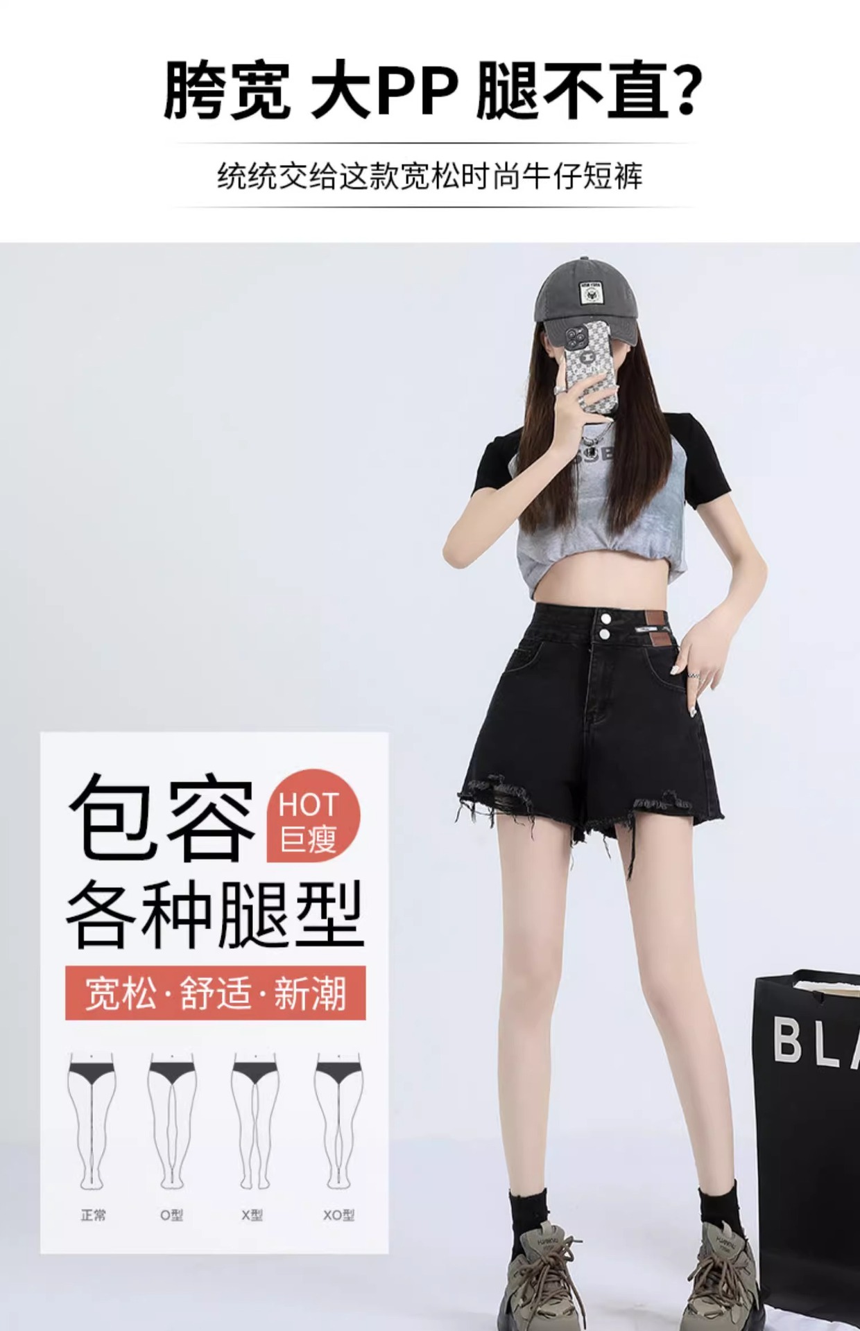 찢어진 데님 반바지 2025 년 여성 여름 통통녀 플러스 사이즈 새로운 폭발 높은 허리 슬림 A 자형 넓은 다리 핫 바지