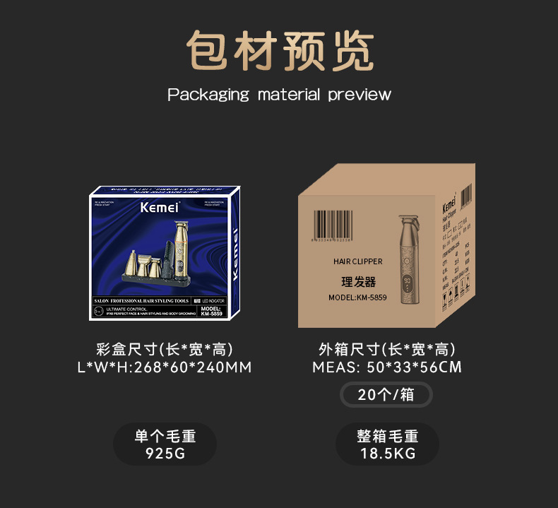 국경 간 코미 헤어 클리퍼 세트 KM-5859 전기 면도 클리퍼 다기능 전기 클리퍼 5 in 1 헤어 클리퍼