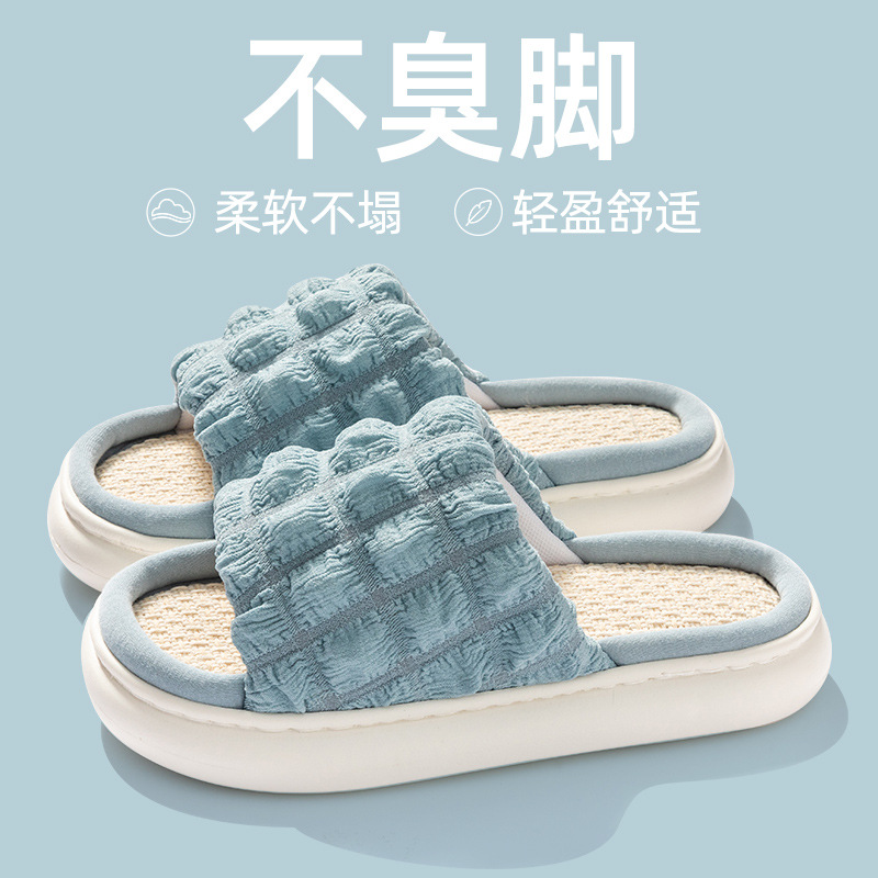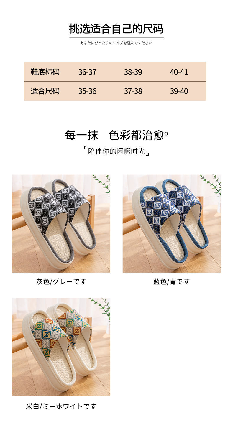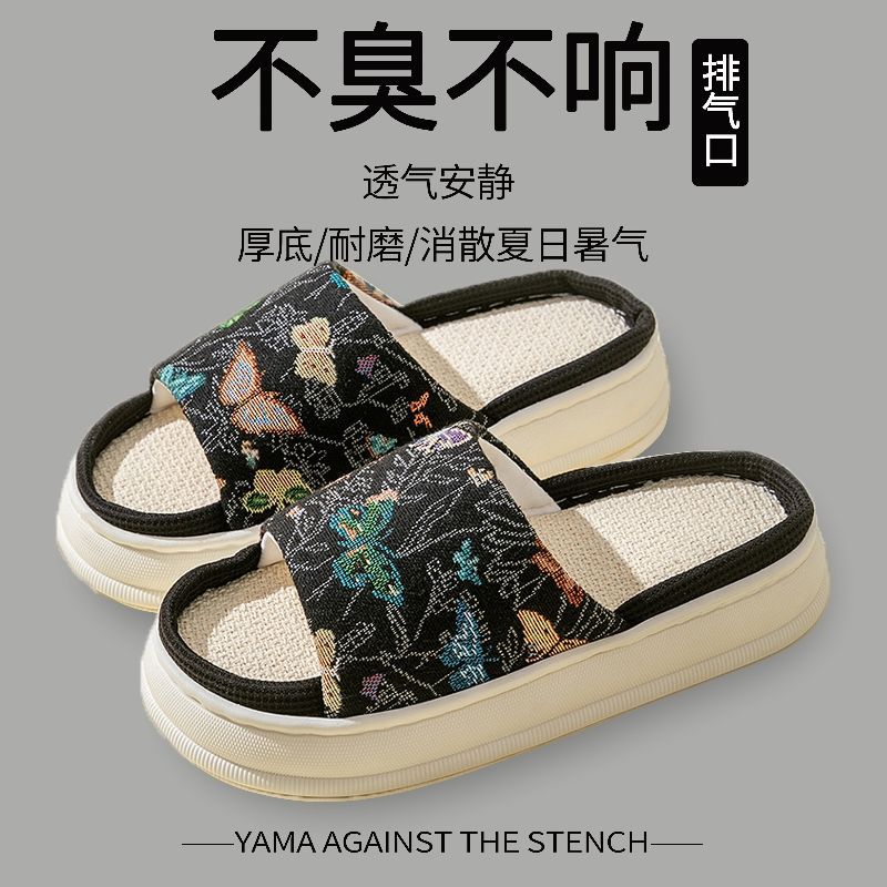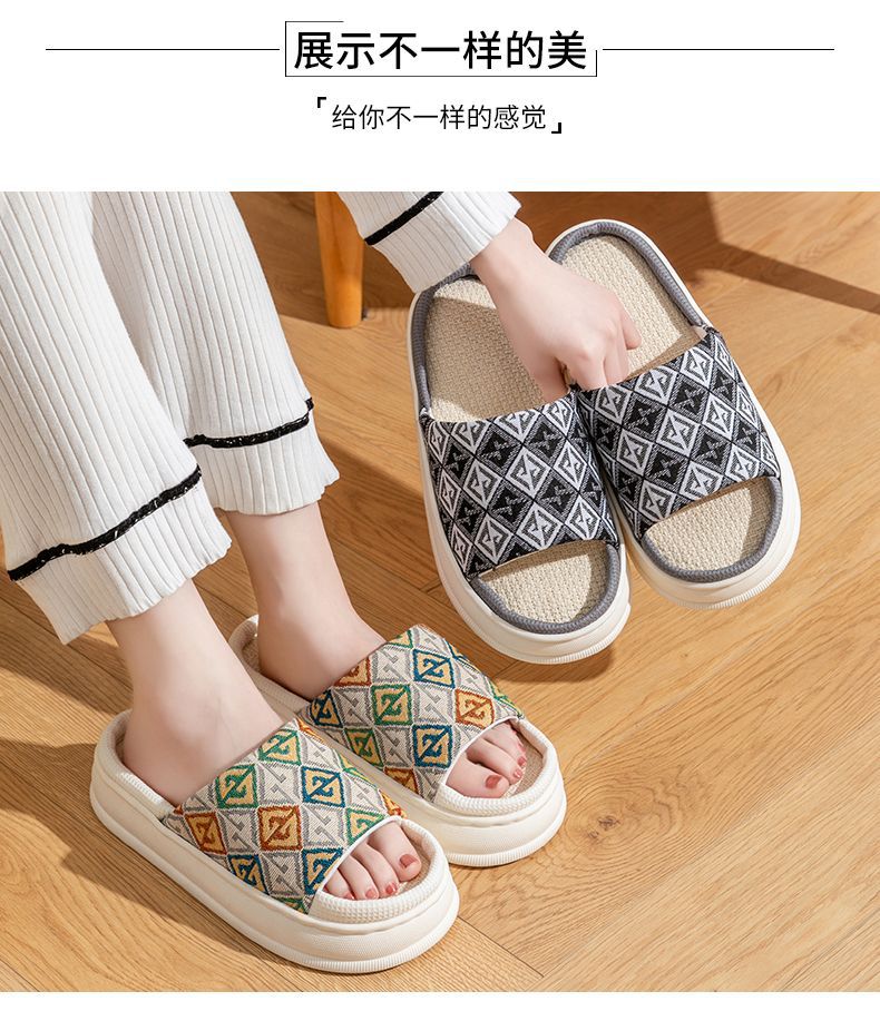 두꺼운 밑창 린넨 슬리퍼 여성의 봄과 가을, 여름 실내 가정면 및 린넨 배설물-집 미끄럼 방지 4 시즌 커플 남성스토어 가기