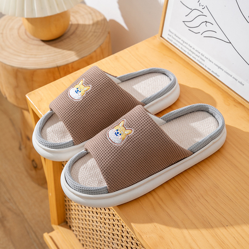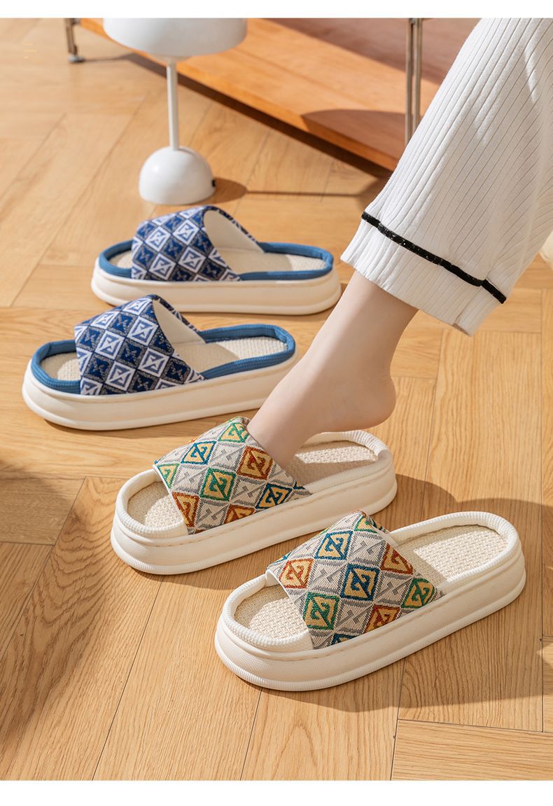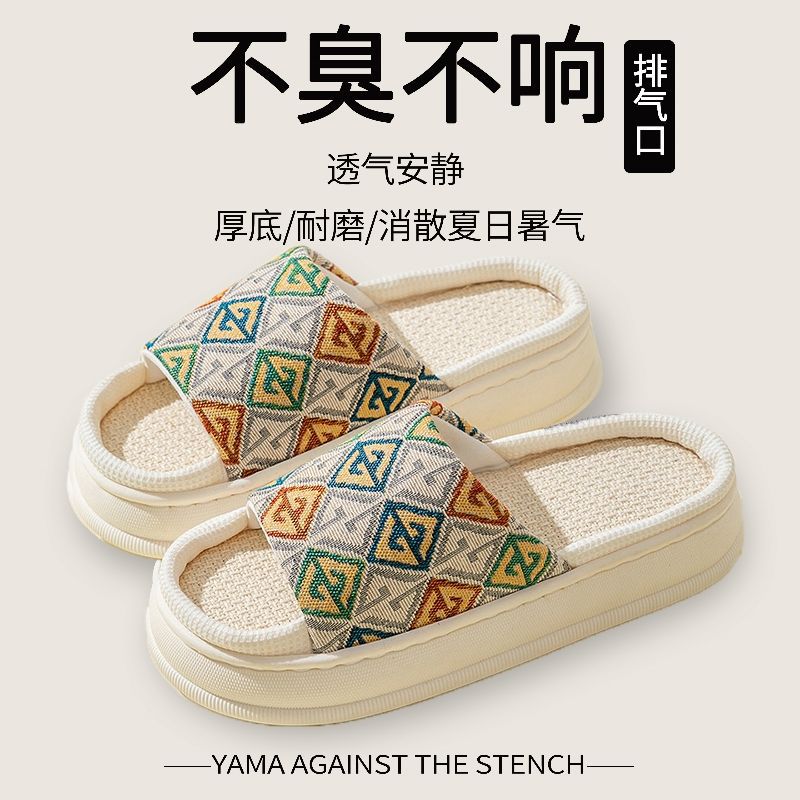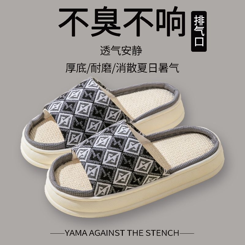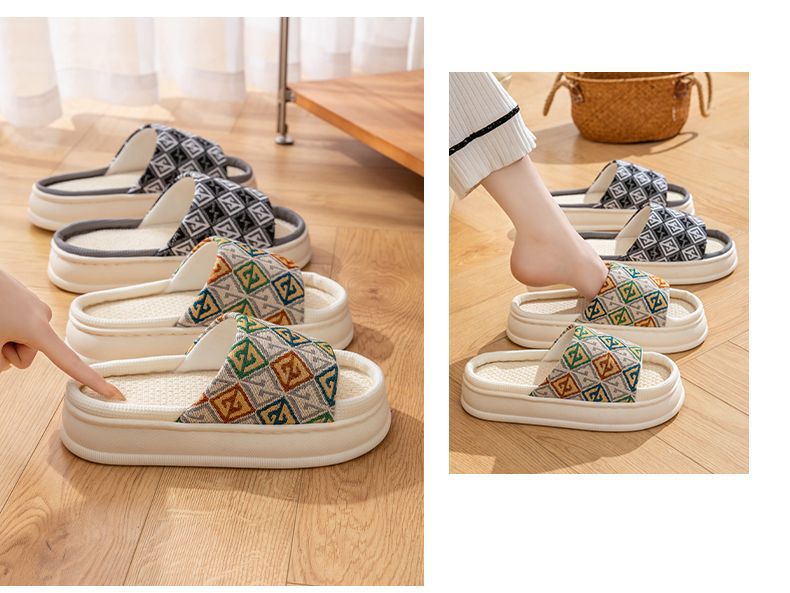 두꺼운 밑창 린넨 슬리퍼 여성의 봄과 가을, 여름 실내 가정면 및 린넨 배설물-집 미끄럼 방지 4 시즌 커플 남성스토어 가기