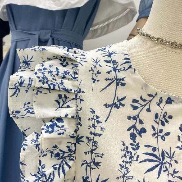프랑스 귀 젊은 감소 꽃 짧은 작은 비행 소매 chic 톱 2025 새로운 여름 우아한 루즈 셔츠스토어 가기