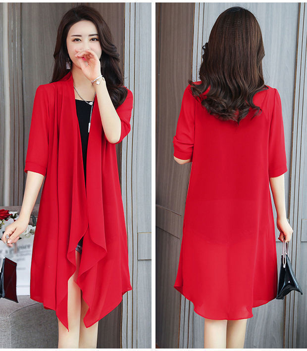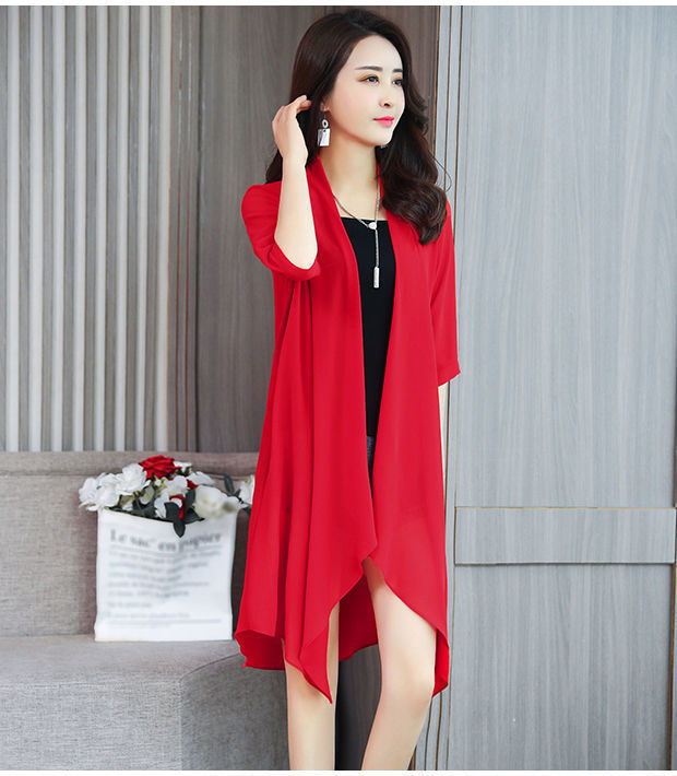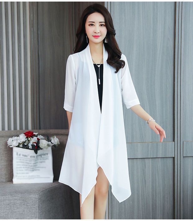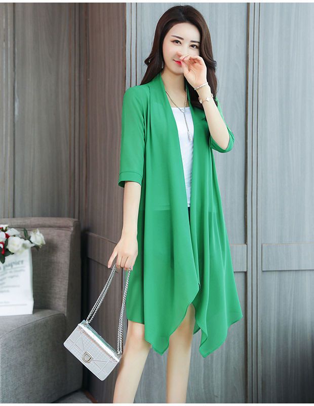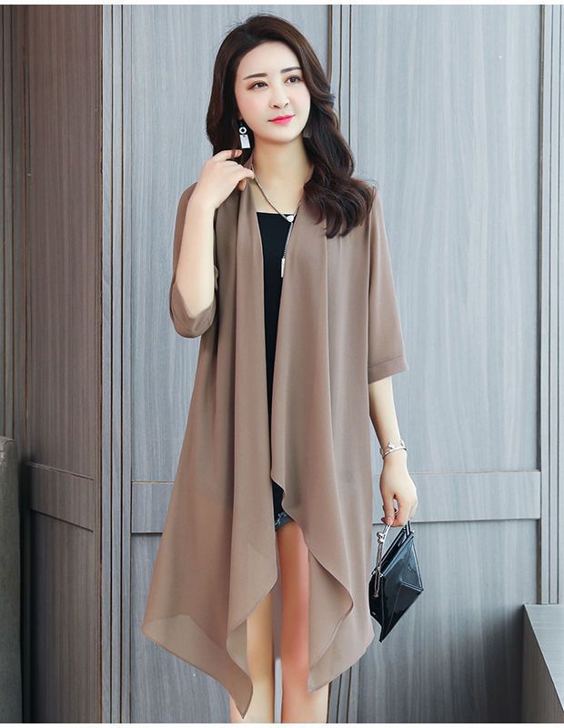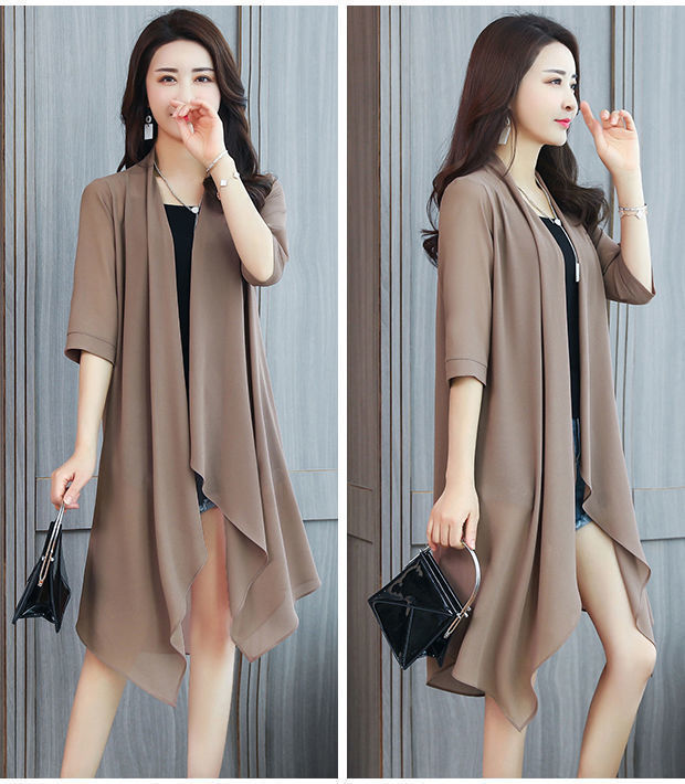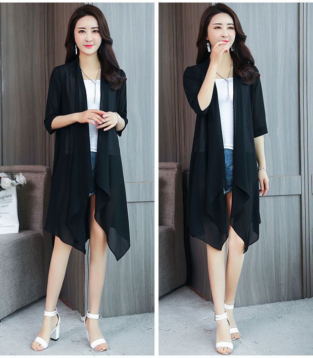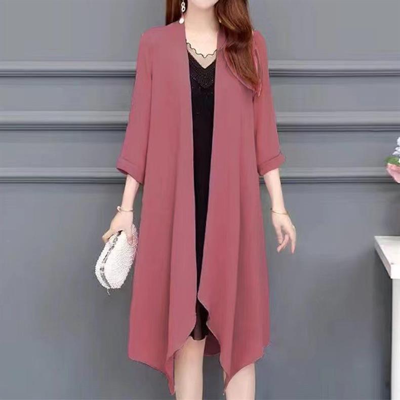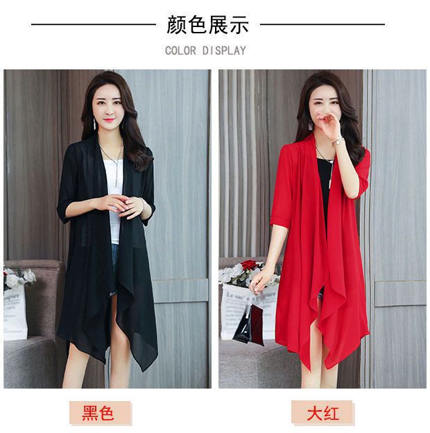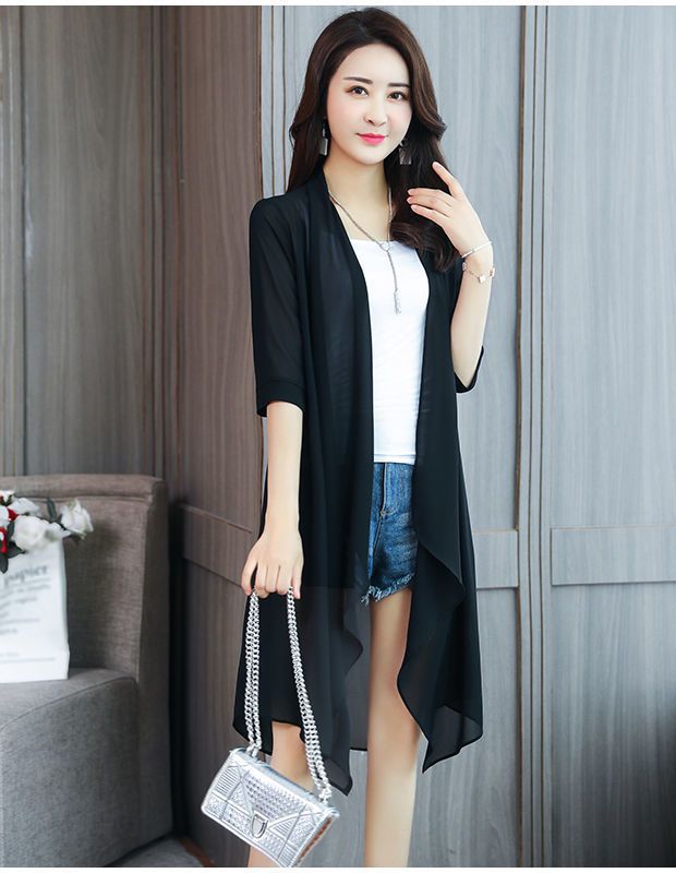 여름 쉬폰 셔츠 긴 울트라 얇은 코트 여성용 옷 2025 새로운 에어컨 셔츠 단색 목도리 카디건스토어 가기