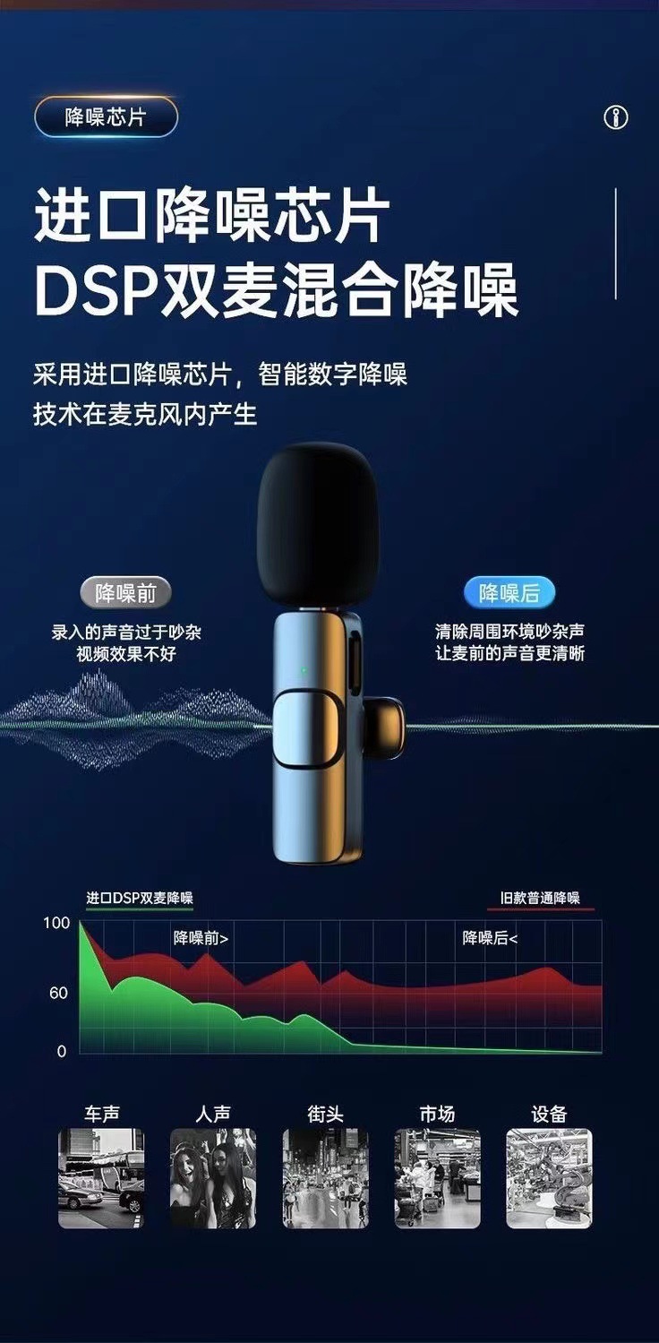국경 간 배송 Douyin Xiaohongshu Pinduoduo 국경 간 지능형 소음 감소 무선 라발리에 마이크 K8K9 HD스토어 가기