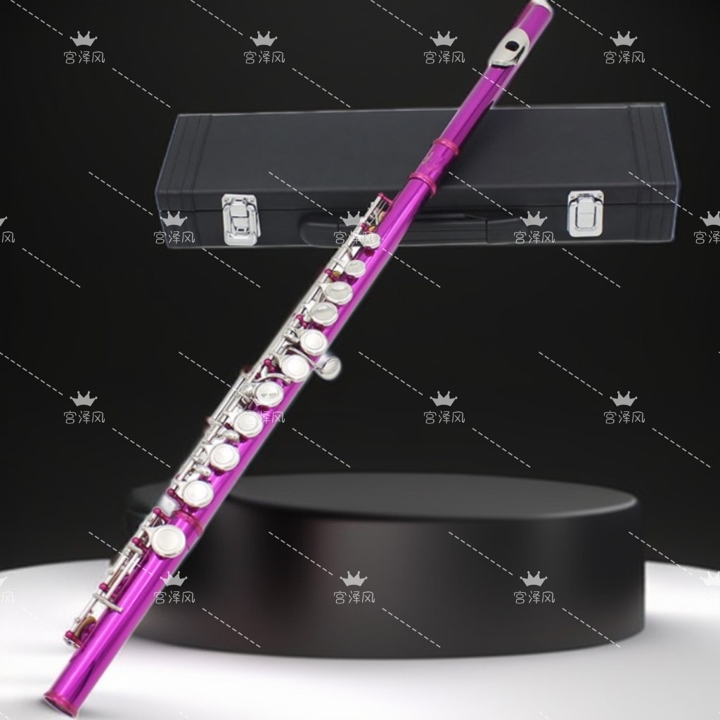 미야자와 스타일 플루트 16홀 플루트 C조 화이트 구리 튜브 바디 가죽 상자 초보자 시험 연주에 적합한 색상
