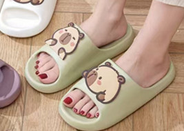 남성과 여성을 위한 실내 두꺼운 밑창 미끄럼 방지 슬리퍼, 2025년 새로운 EVA 욕실 외부 착용 곰 만화