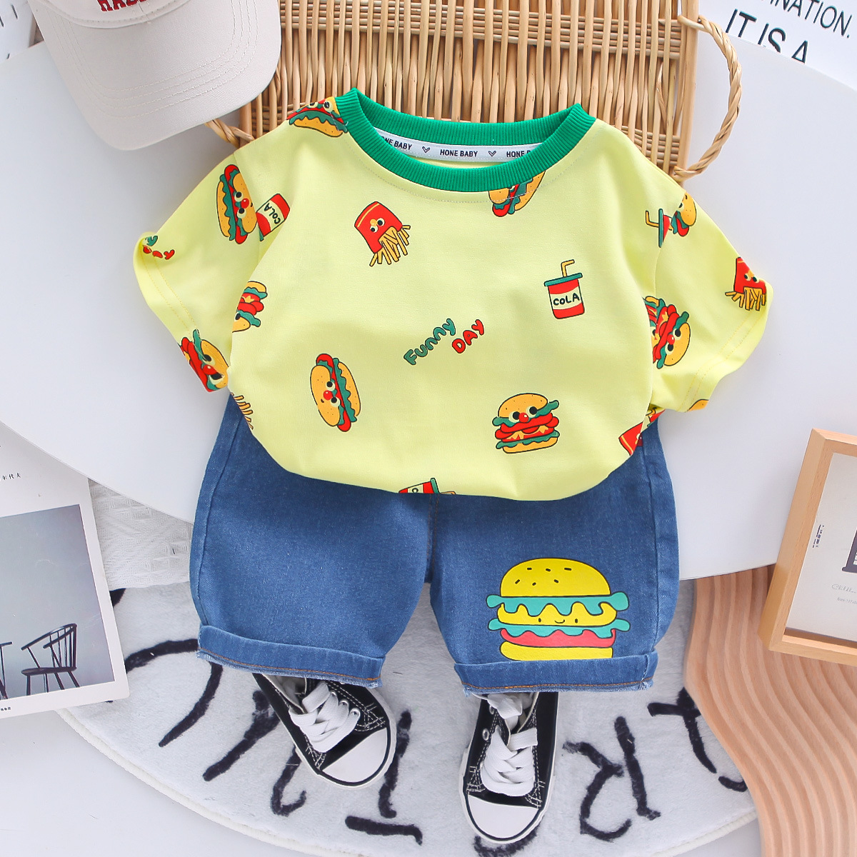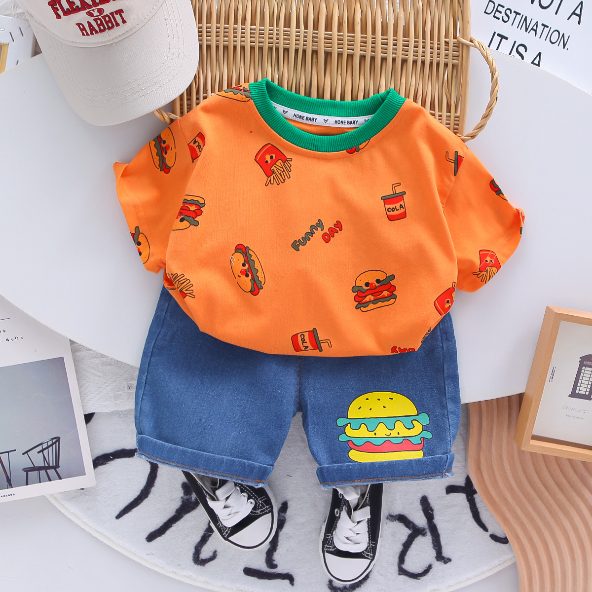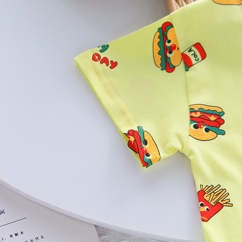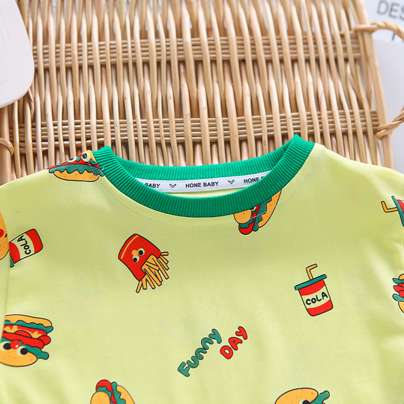 소년 여름 정장 반팔 어린이 여름 소년 아기 여름 옷 만화 라운드 넥 반팔 투피스 세트