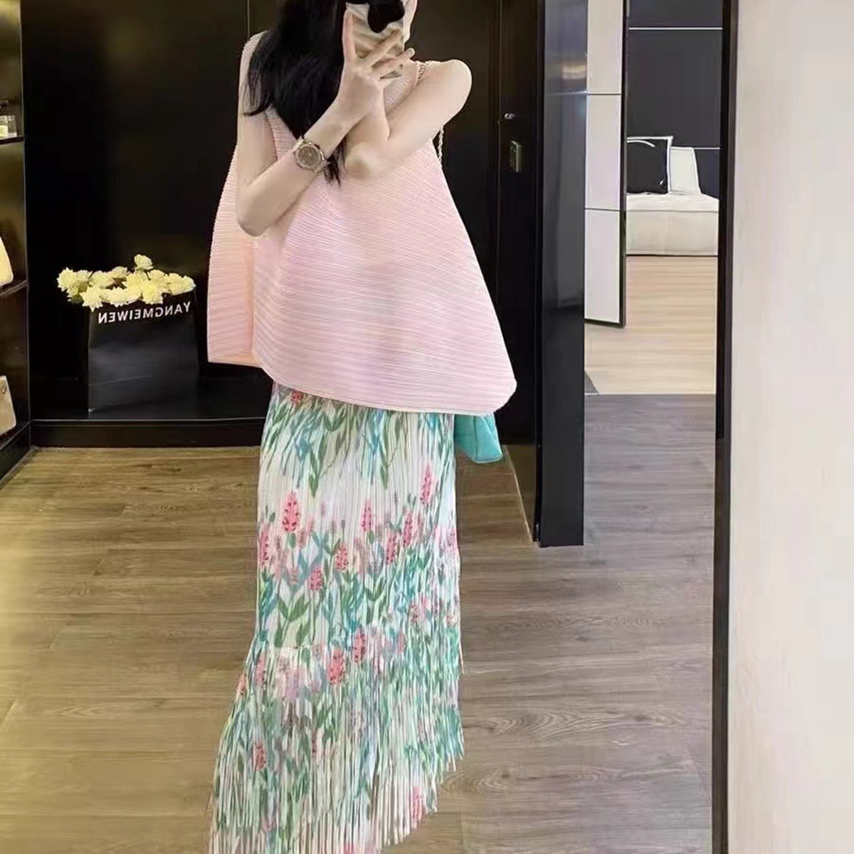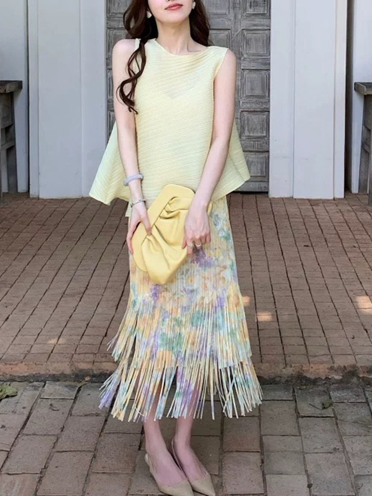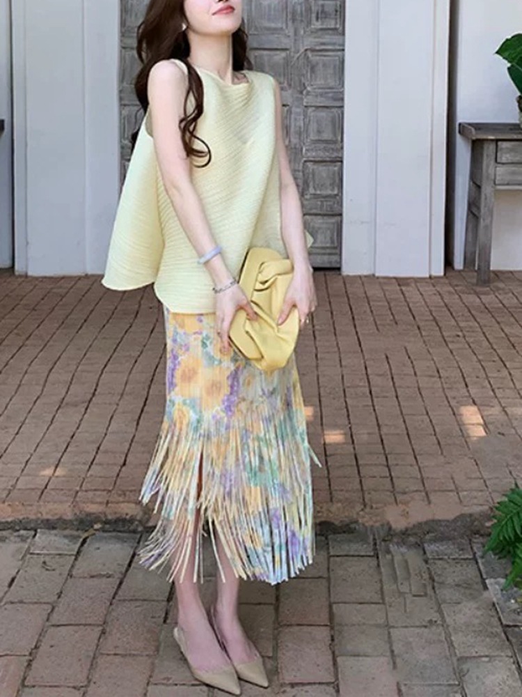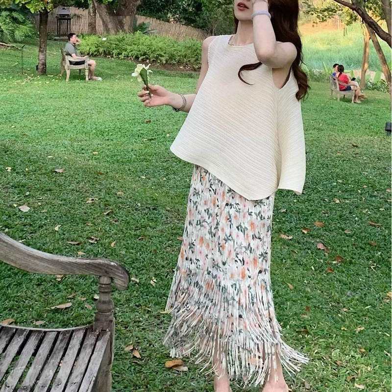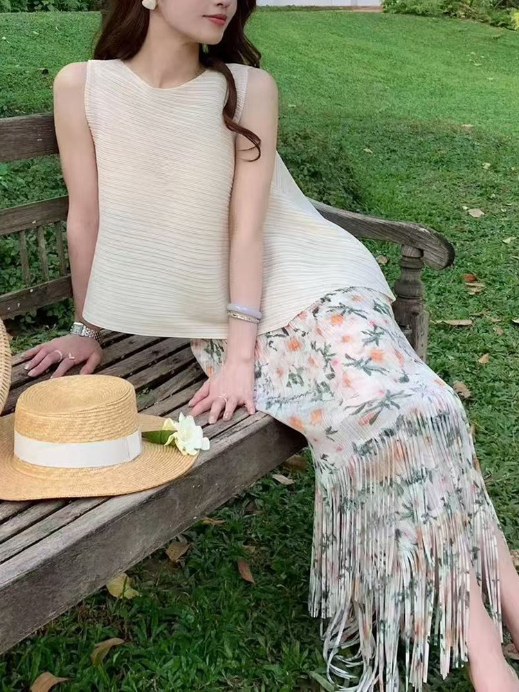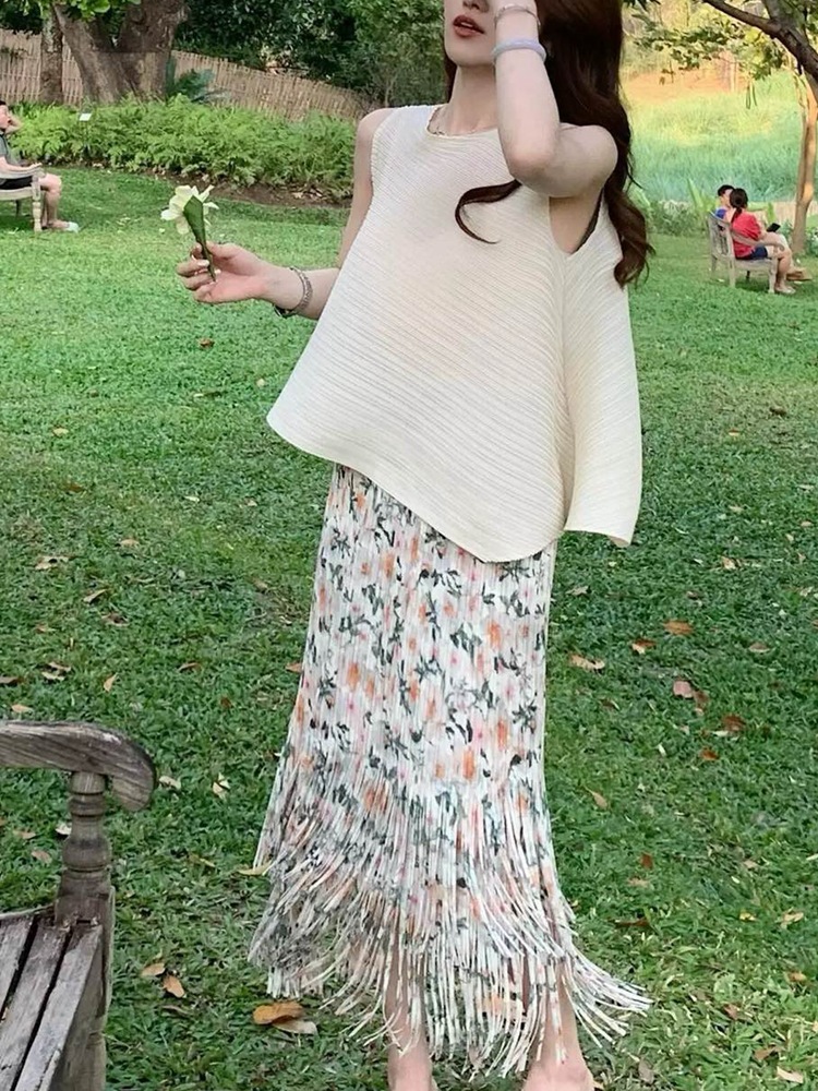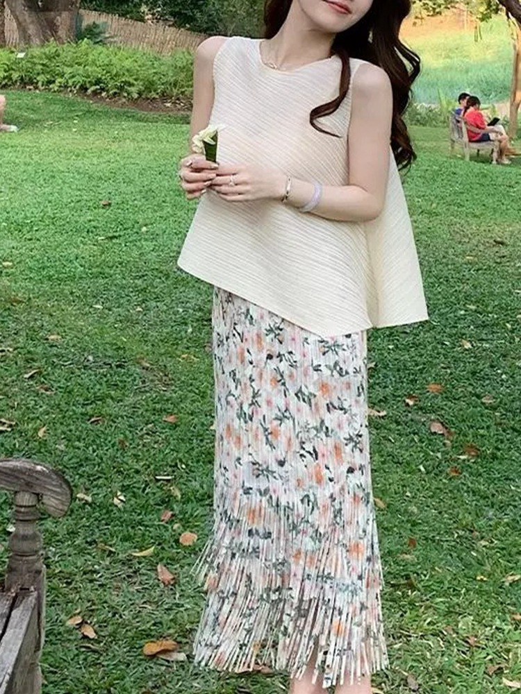 작은 빨간 책 폭발 라이브 판매 화이트 세트 여성 하이 엔드 Pleated 투피스 우아한 착용 완벽한 세트