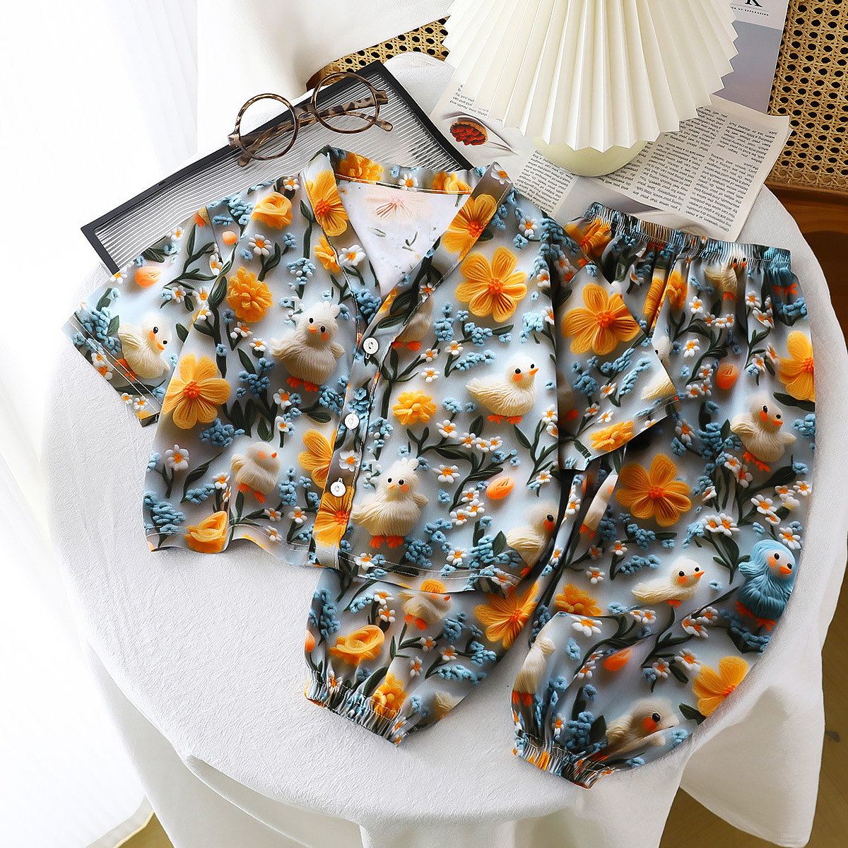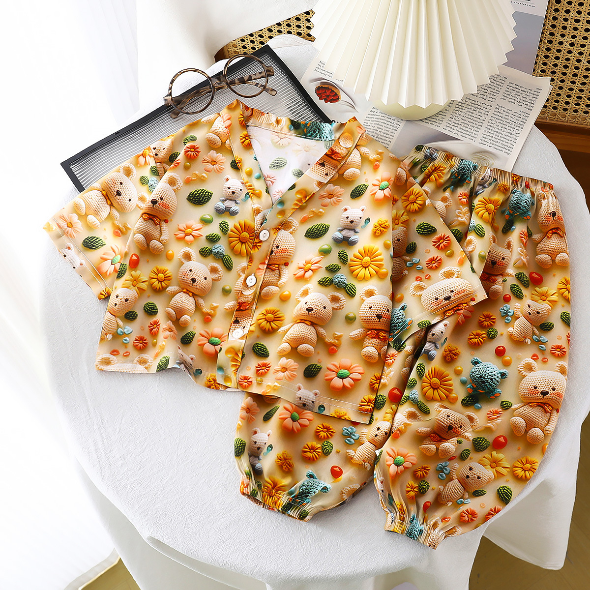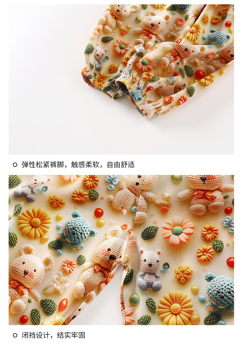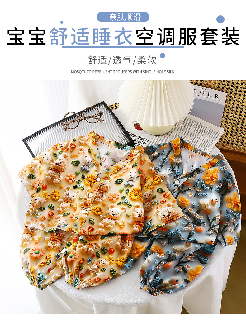 남학생과 여학생을위한 여름 어린이 면 실크 파자마 표준 A 얇은 면 실크 베이비 에어컨 홈 의류 긴 소매 세트스토어 가기